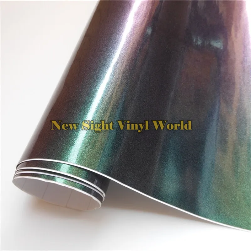 Product Name: 3 طبقات لامعة الأرجواني الأخضر الحرباء الماس بريق الفينيل التفاف ملصق مائي فقاعة الحرة لصناعة السيارات الحجم: 1.52*20 متر