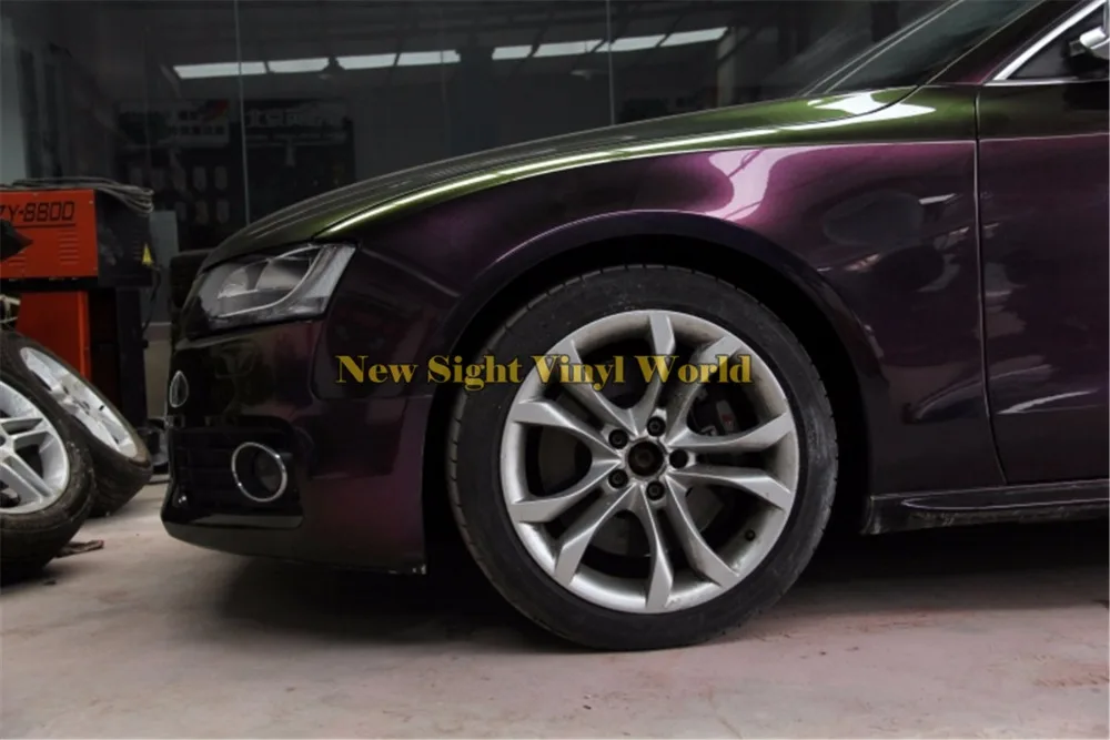 Special Offer 3 طبقات لامعة الأرجواني الأخضر الحرباء الماس بريق الفينيل التفاف ملصق مائي فقاعة الحرة لصناعة السيارات الحجم: 1.52*20 متر Discount 8% Today!