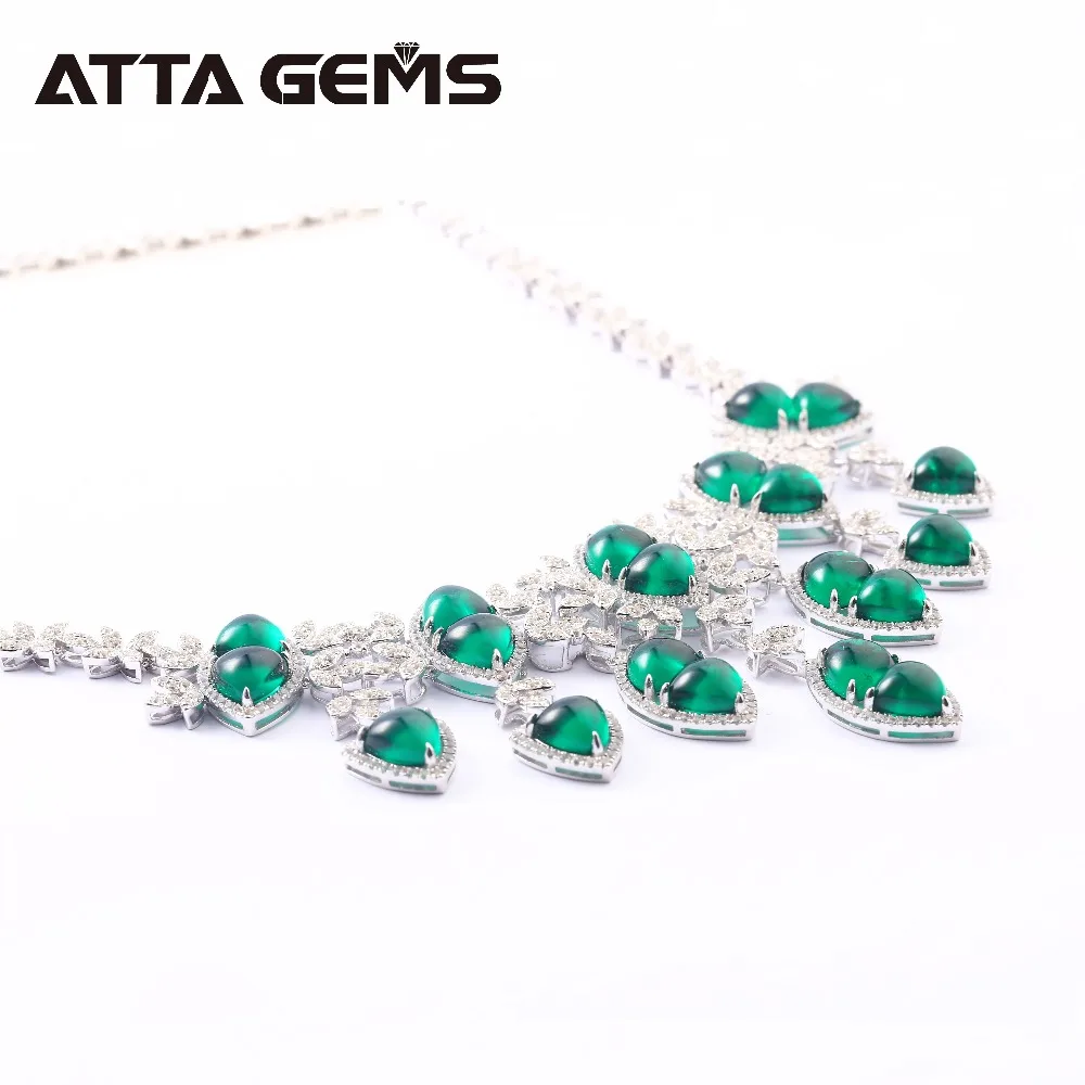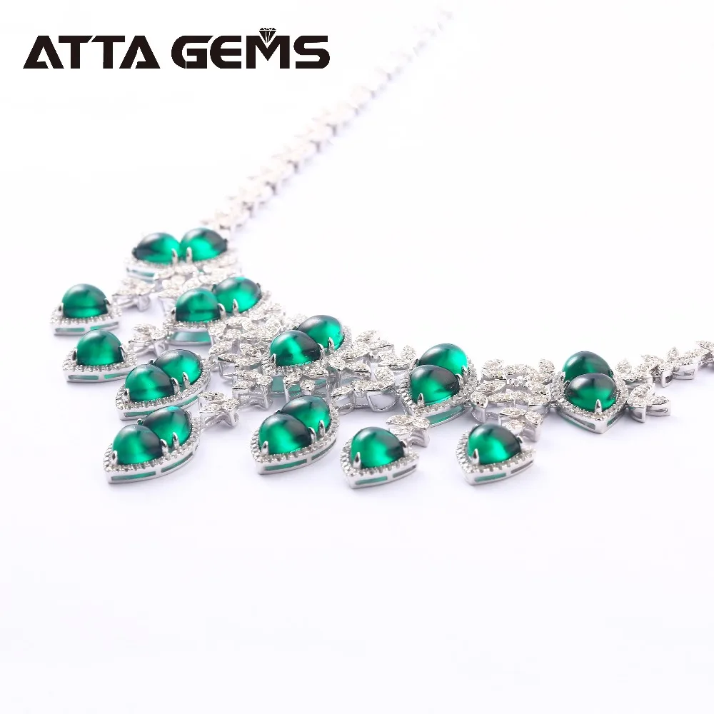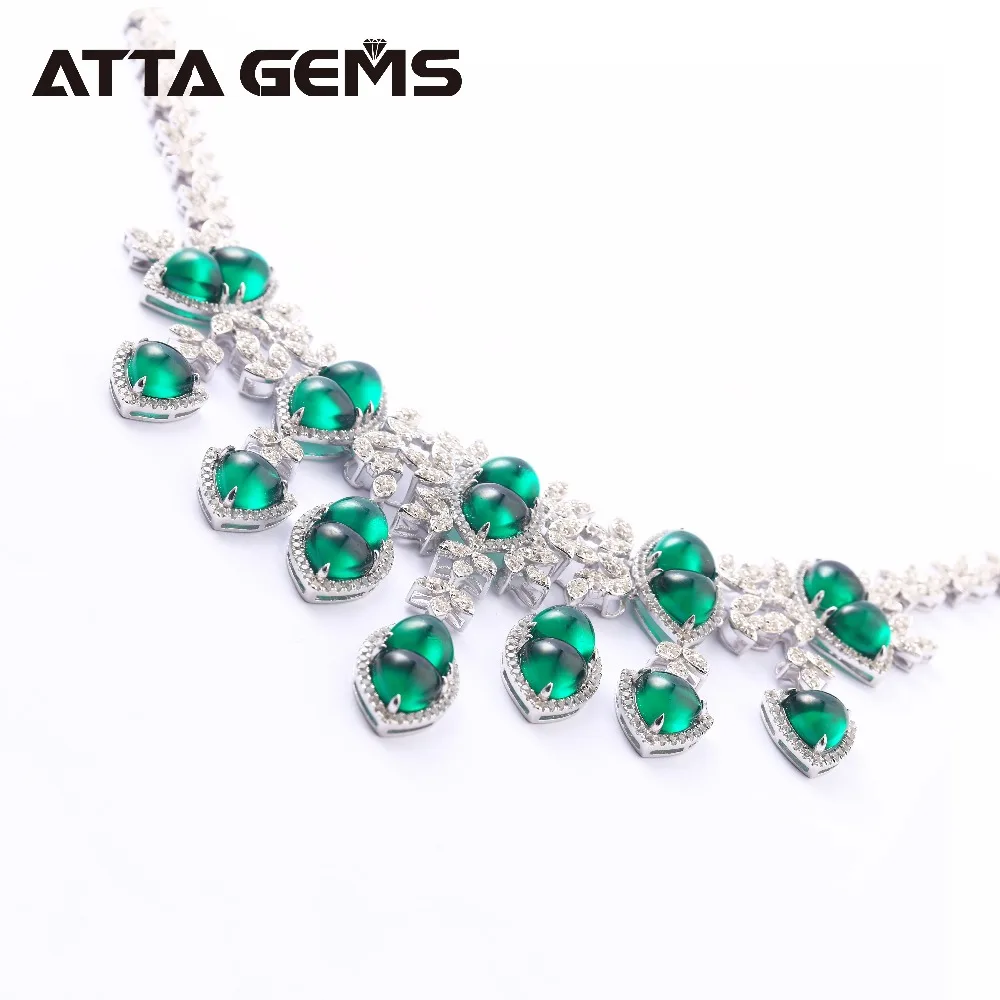 Product Name: كابوشون الزمرد الاسترليني حلية فضيّة متدلّية للنساء نمط فاخر 40 قيراط خلق الزمرد فضة مجوهرات الزفاف