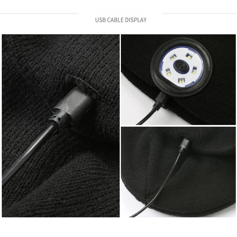 Product Name: 5.0 سماعة رأس بخاصية البلوتوث محبوك قبعة في الهواء الطلق ليلة الجري ليلة الصيد مصباح ليد الإضاءة بلوتوث مصباح قبعة سماعات رأس لاسلكية