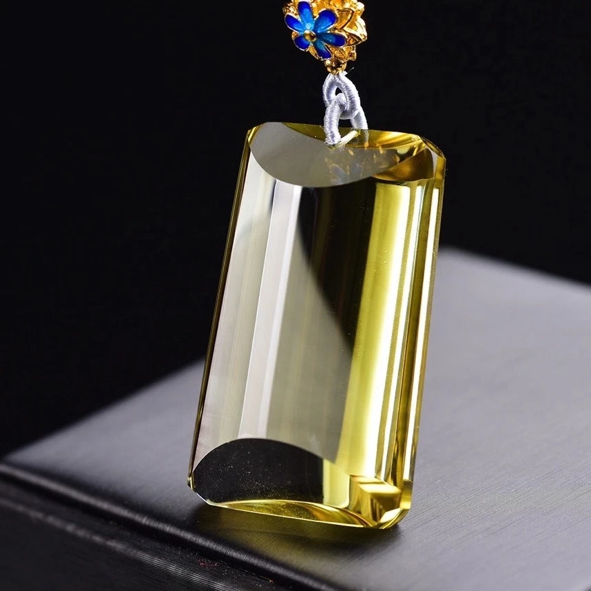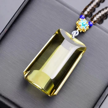 Product Name: الطبيعية الأصفر سيترين كوارتز كريستال مستطيل قلادة 55*33*22 مللي متر الأحجار الكريمة المرأة الأوجه قص الغنية عقد من اللؤلؤ AAAAA