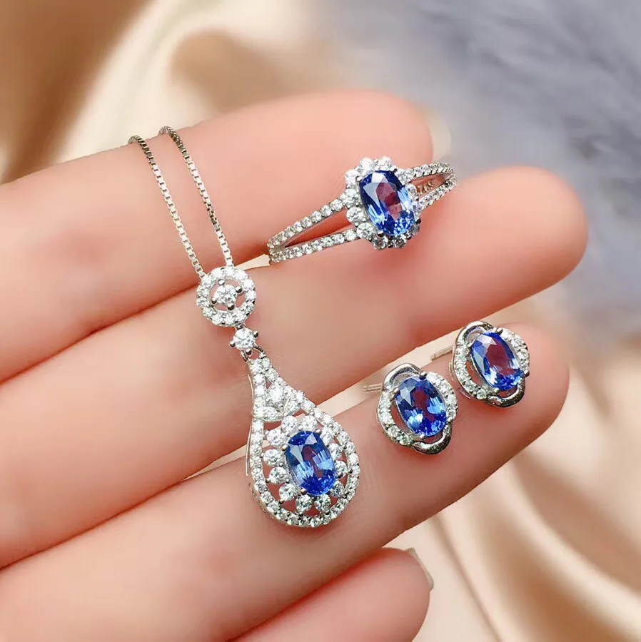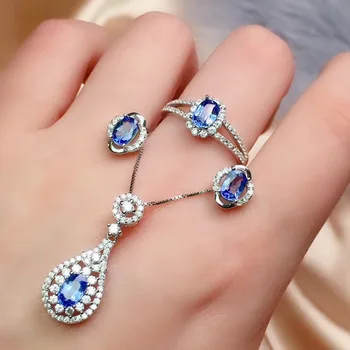 Product Name: أفضل هدية الطبيعية و ريال الياقوت طقم مجوهرات الياقوت الطبيعي الحقيقي 925 فضة 1 قطعة قلادة ، 1 قطعة حلقة ، 2 قطعة القرط
