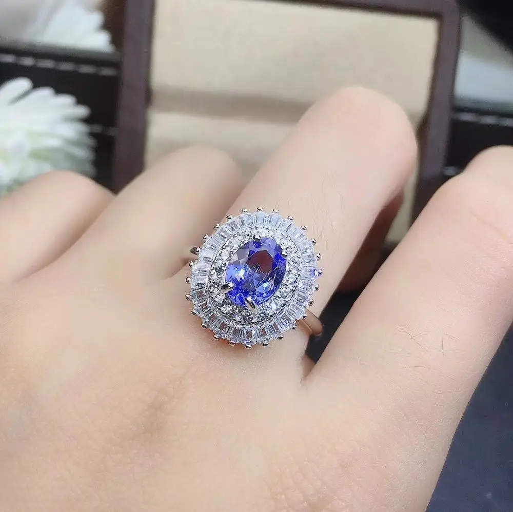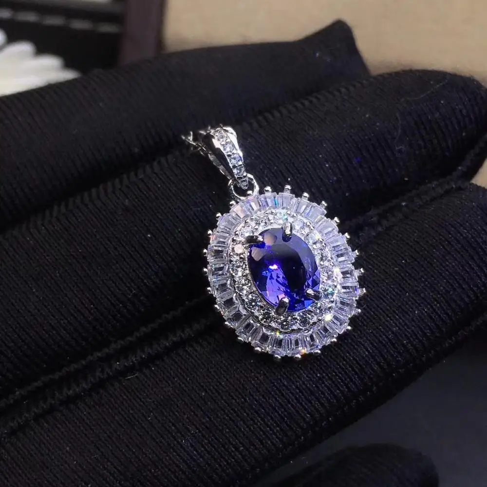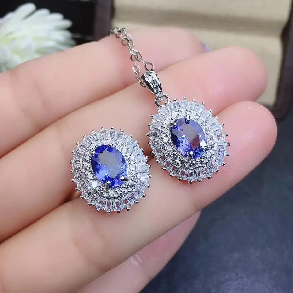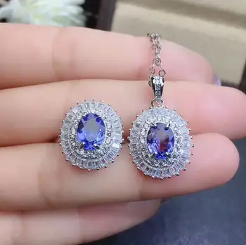 Product Name: شحن مجاني الطبيعية تنزانيت طقم مجوهرات الطبيعية ريال تنزانيت 925 فضة 1 قطعة قلادة ، 1 قطعة حلقة
