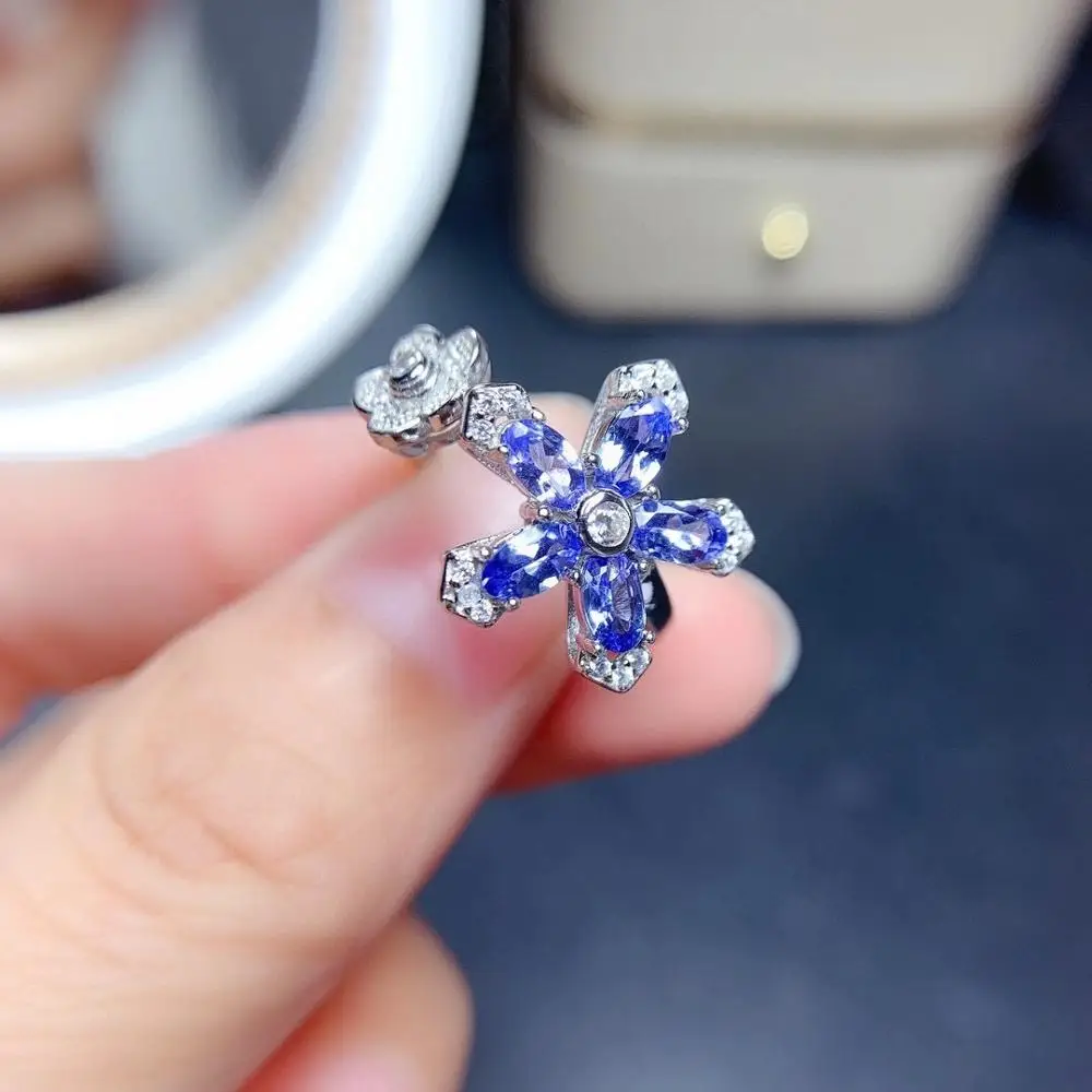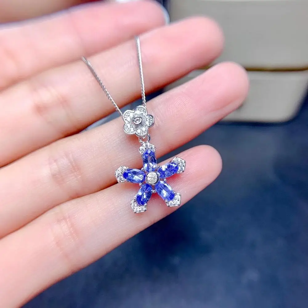 Product Name: جديد وصول زهرة تنزانيت مجموعة طقم مجوهرات الطبيعية ريال تنزانيت مجموعة 925 فضة 1 قطعة قلادة ، 1 قطعة حلقة