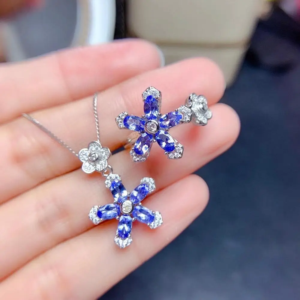 Special Offer جديد وصول زهرة تنزانيت مجموعة طقم مجوهرات الطبيعية ريال تنزانيت مجموعة 925 فضة 1 قطعة قلادة ، 1 قطعة حلقة Discount 25% Today!