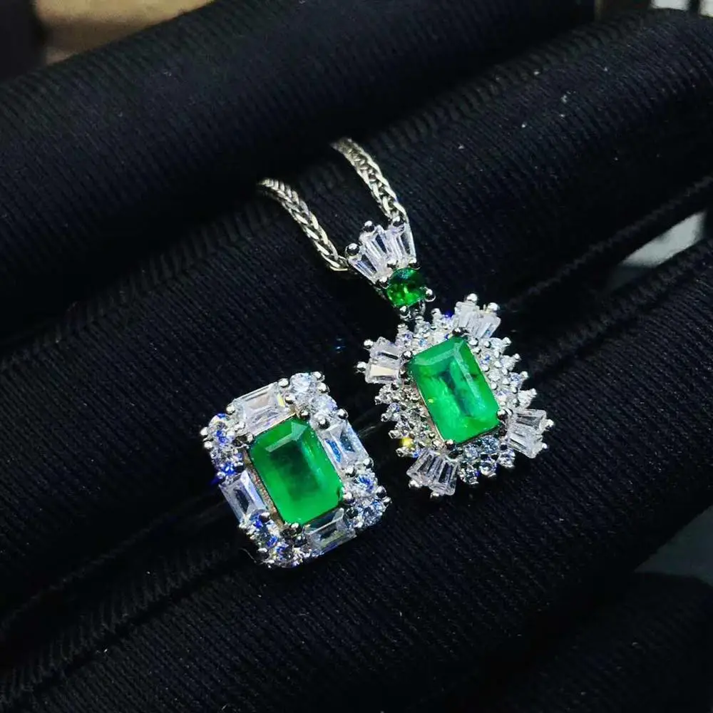Special Offer ريال الطبيعية الزمرد طقم مجوهرات الطبيعية ريال الزمرد 925 فضة 1 قطعة قلادة ، 1 قطعة خاتم Discount 48% Today!