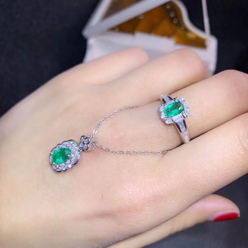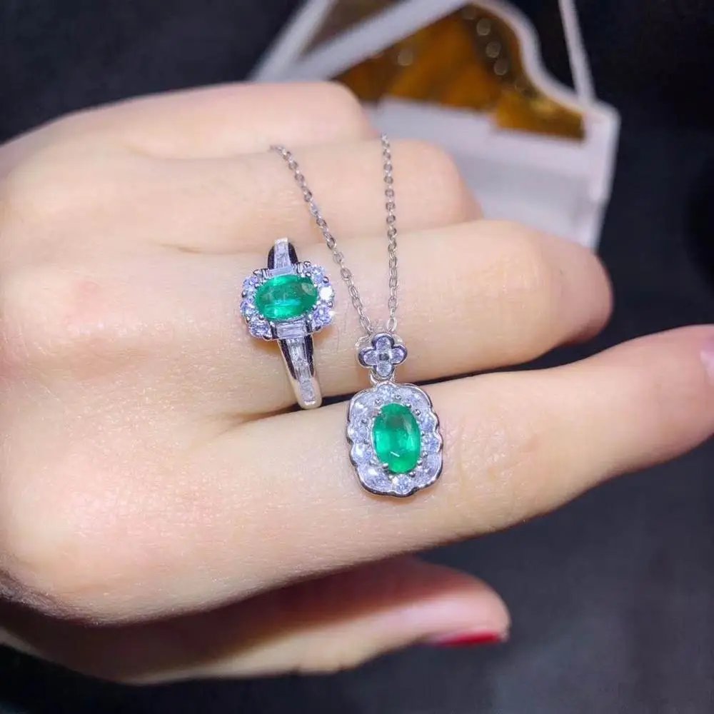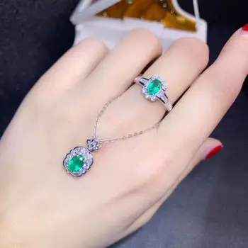 Product Name: ريال الطبيعية الزمرد طقم مجوهرات الطبيعية ريال الزمرد 925 فضة 1 قطعة قلادة ، 1 قطعة خاتم
