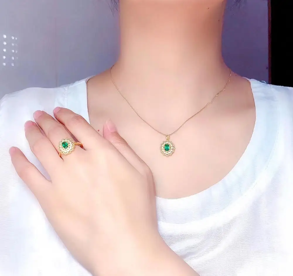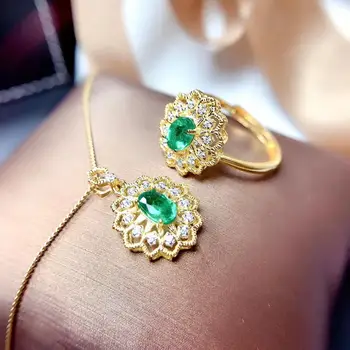 Special Offer جديد وصول الطبيعية ريال الطبيعية الزمرد طقم مجوهرات ريال الطبيعية الزمرد 925 فضة 1 قطعة قلادة ، 1 قطعة خاتم Discount 48% Today!
