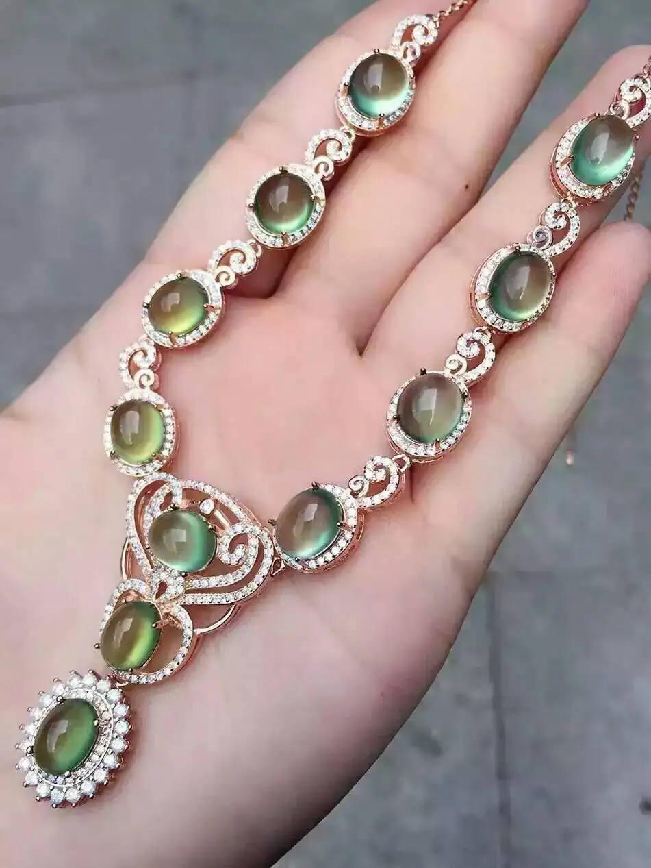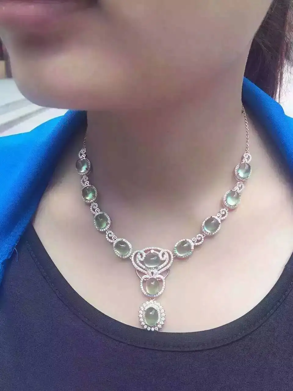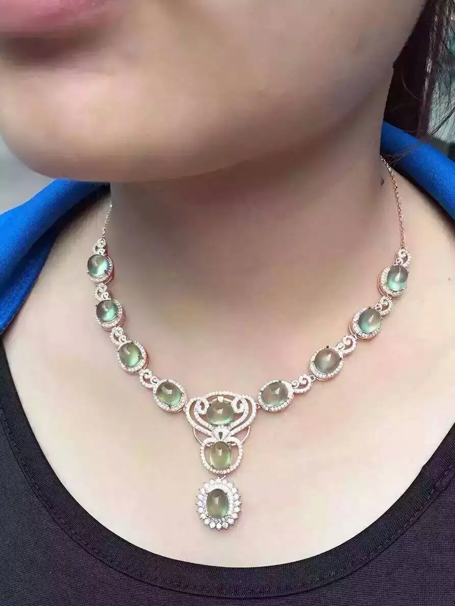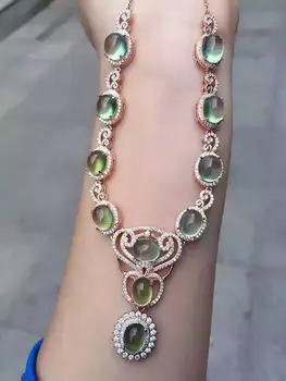 Product Name: قلادة بريهنيت الطبيعية الخضراء الأحجار الكريمة الطبيعية قلادة قلادة 925 الشظية المرأة العصرية محظوظ الجولة النساء الطرف غرامة مجوهرات