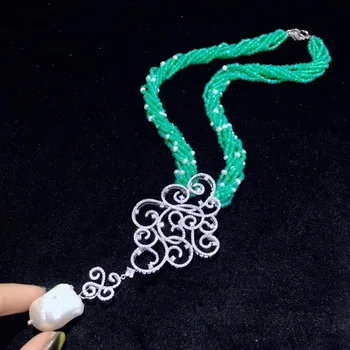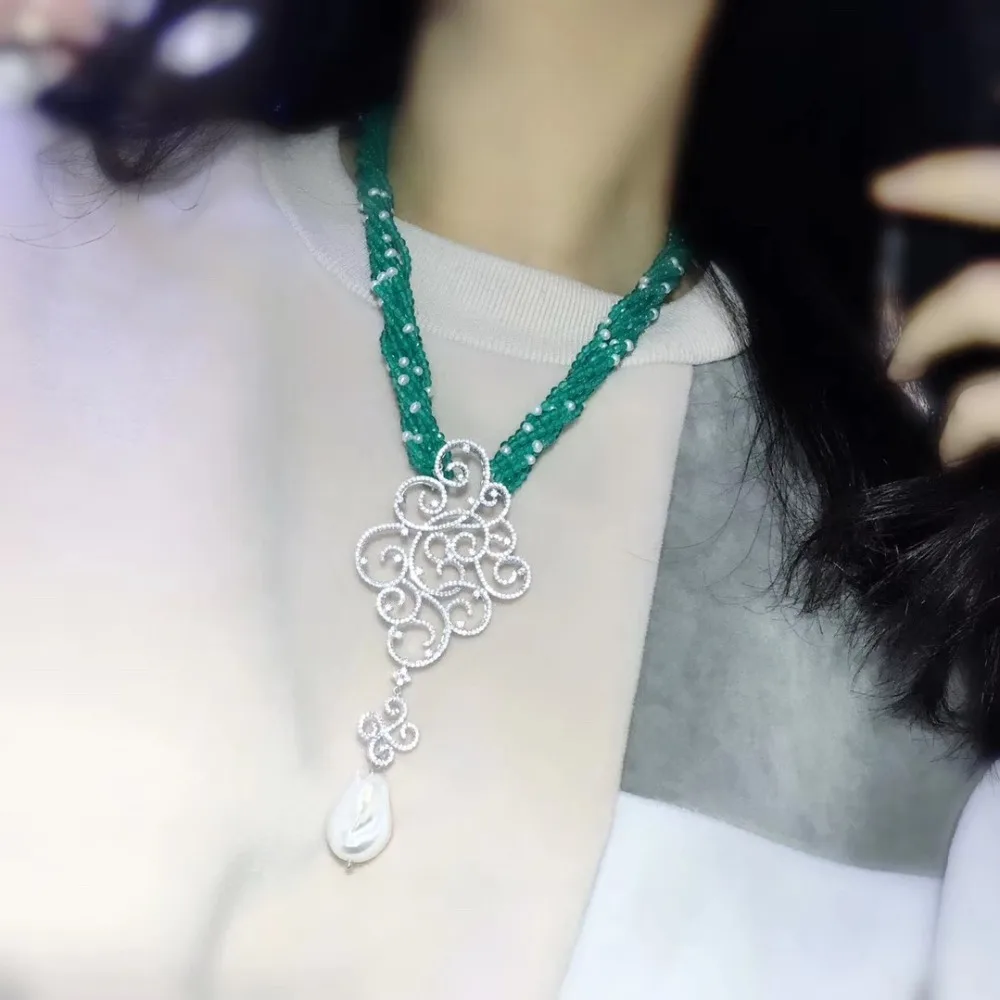 Product Name: الباروك لؤلؤ طبيعي من المياه النقية قلادة قلادة الحجر الأخضر متعدد الطبقات تويست 925 فضة مكعب الزركون 19 بوصة