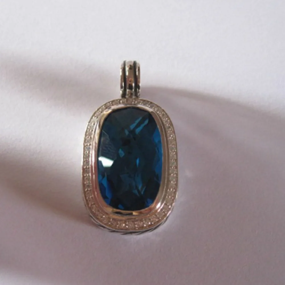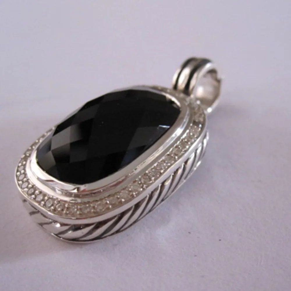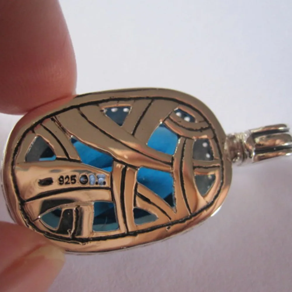 Product Name: الصلبة 925 الفضة مجوهرات 21X12 مللي متر الأسود الجزع محسن تصميم مجوهرات الأزرق توباز Wowen قلادة عيد الميلاد هدايا عيد هدايا