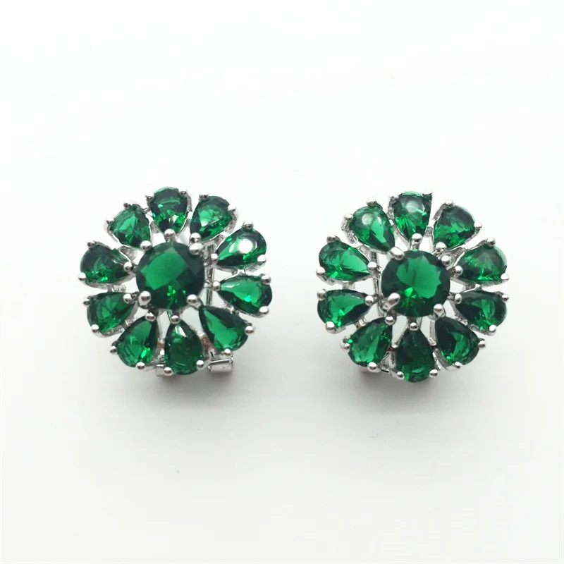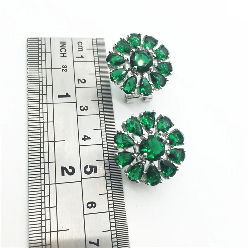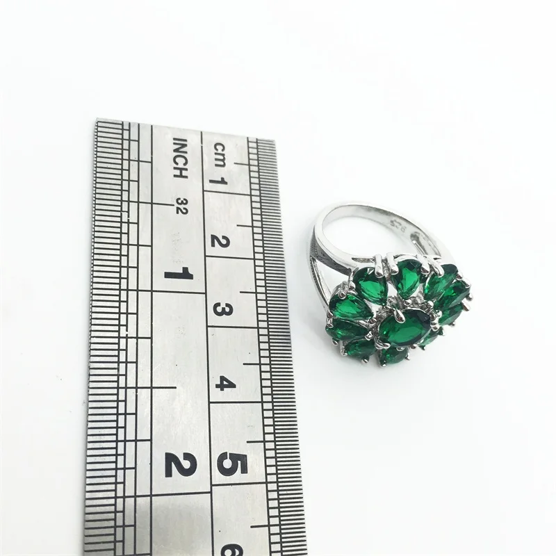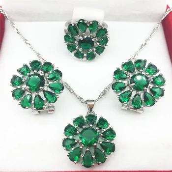 Product Name: 925 فضة الأخضر الأخضر مجوهرات مجموعات زهرة على شكل أقراط/قلادة/قلادة/خواتم 6/7/ 8/9 للنساء شحن مجاني