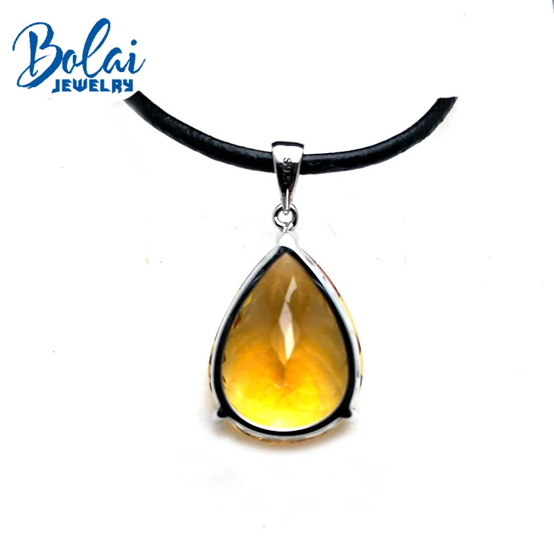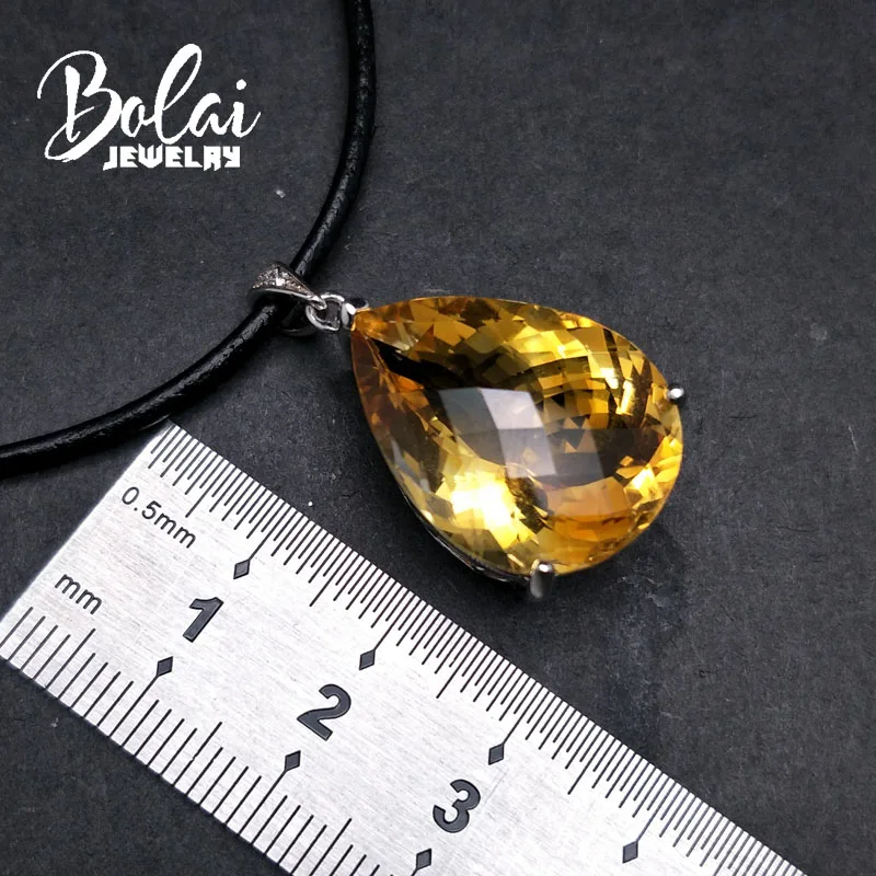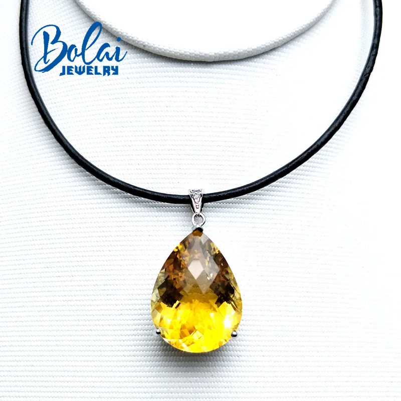 Product Name: Bolaijewelry ، كبير الحجم 20ct الشطرنج قطع جيد رونق سيترين الطبيعية قلادة مع الجلود الحبل قلادة 925 الفضة المرأة