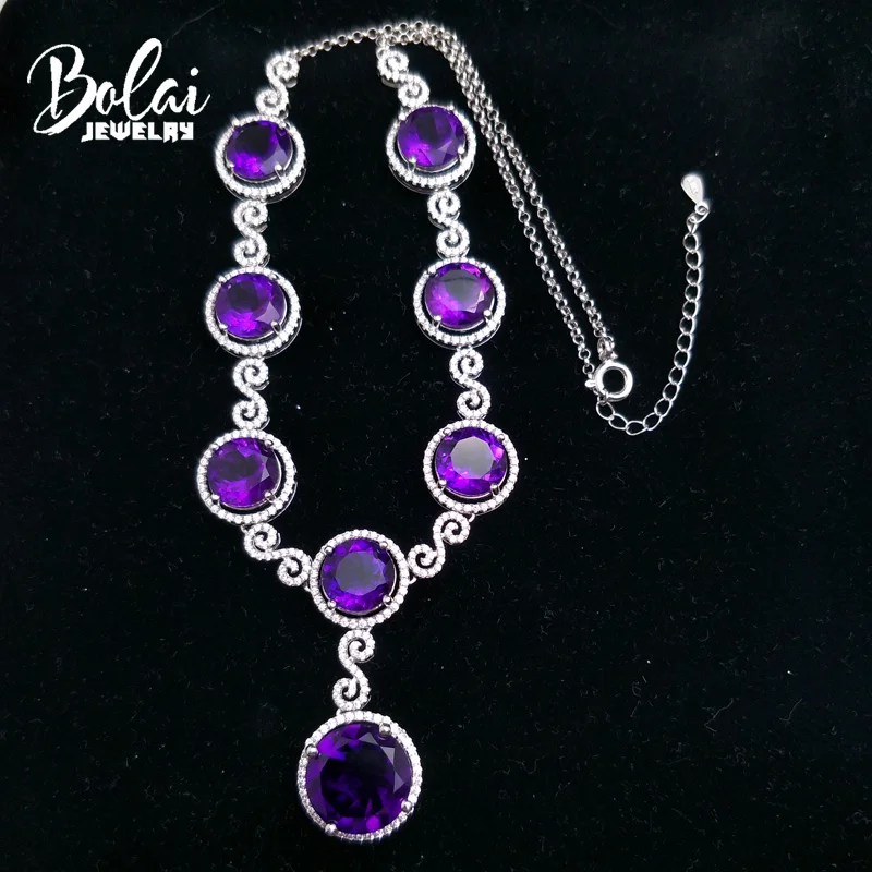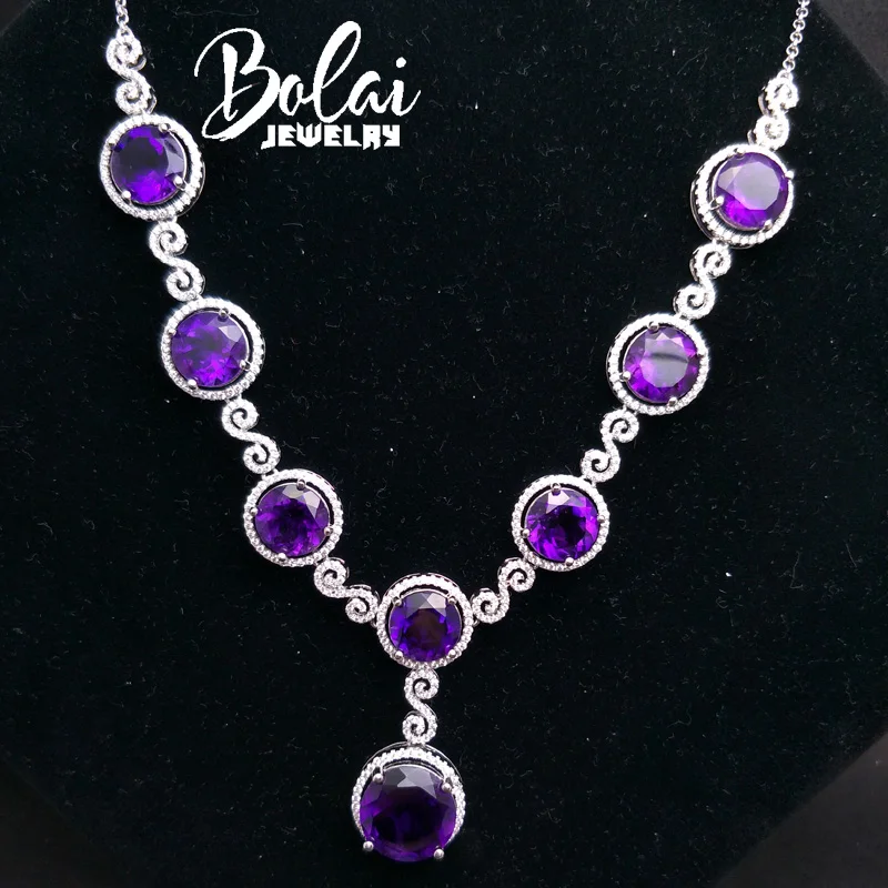 Product Name: مجوهرات Bolaijewelry ، عقد حفلات وقلادة إفريقية طبيعية كبيرة من حجر الجمشت والأحجار الكريمة 925 من الفضة الإسترليني الجميلة مجوهرات نسائية هدية خطو...