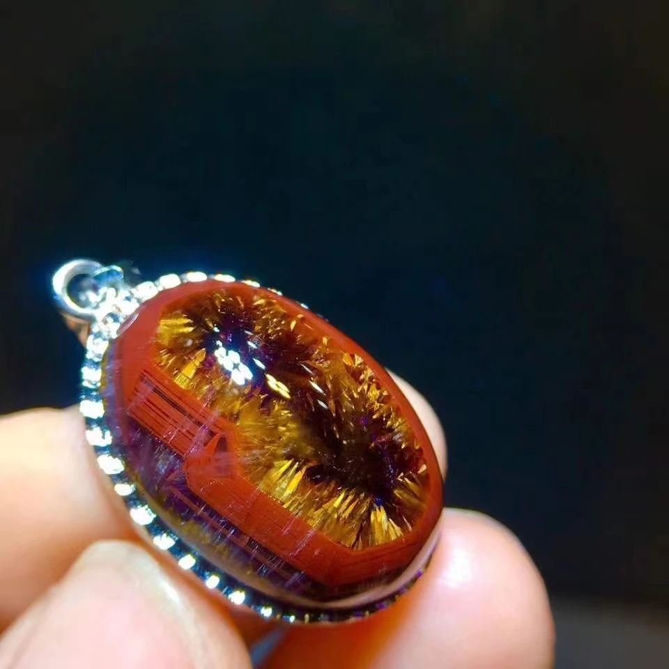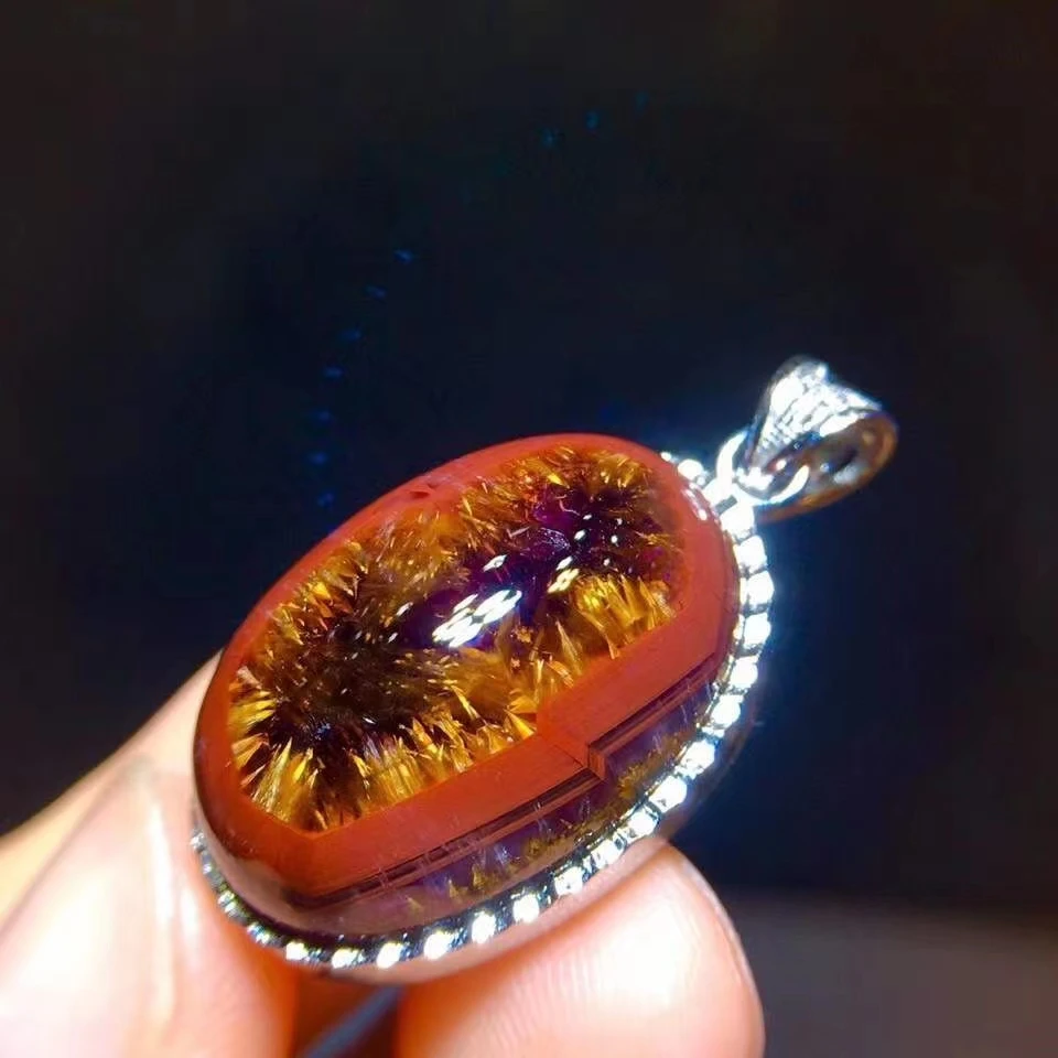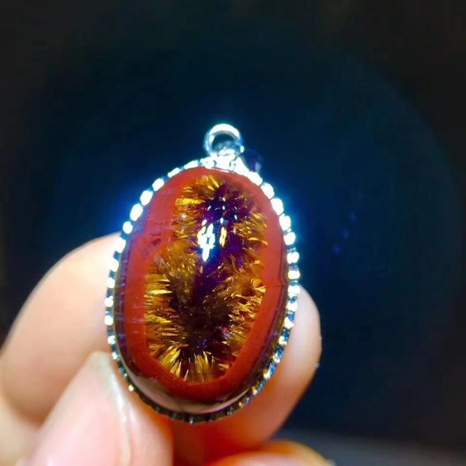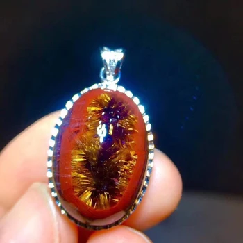 Product Name: الطبيعية Cacoxenite Auralite 23 الأرجواني الأحمر النساء الرجال قلادة 925 فضة 22.2/15.3/10.3 مللي متر كندا مجوهرات AAAAA