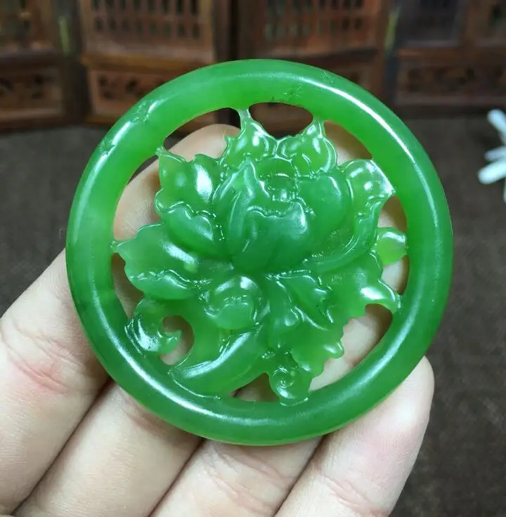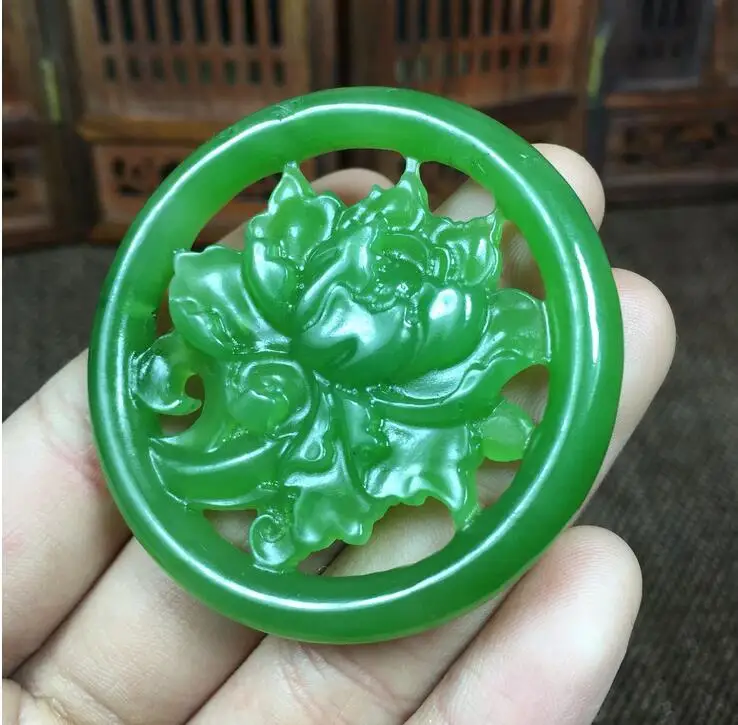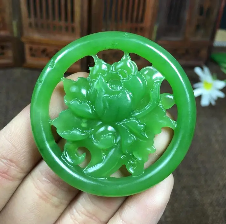 Product Name: الساقطات الطبيعية Hetian الخضراء Ollow الفاوانيا قلادة ، اليشم زهرة ، الغنية و الثمينة قلادة شحن مجاني