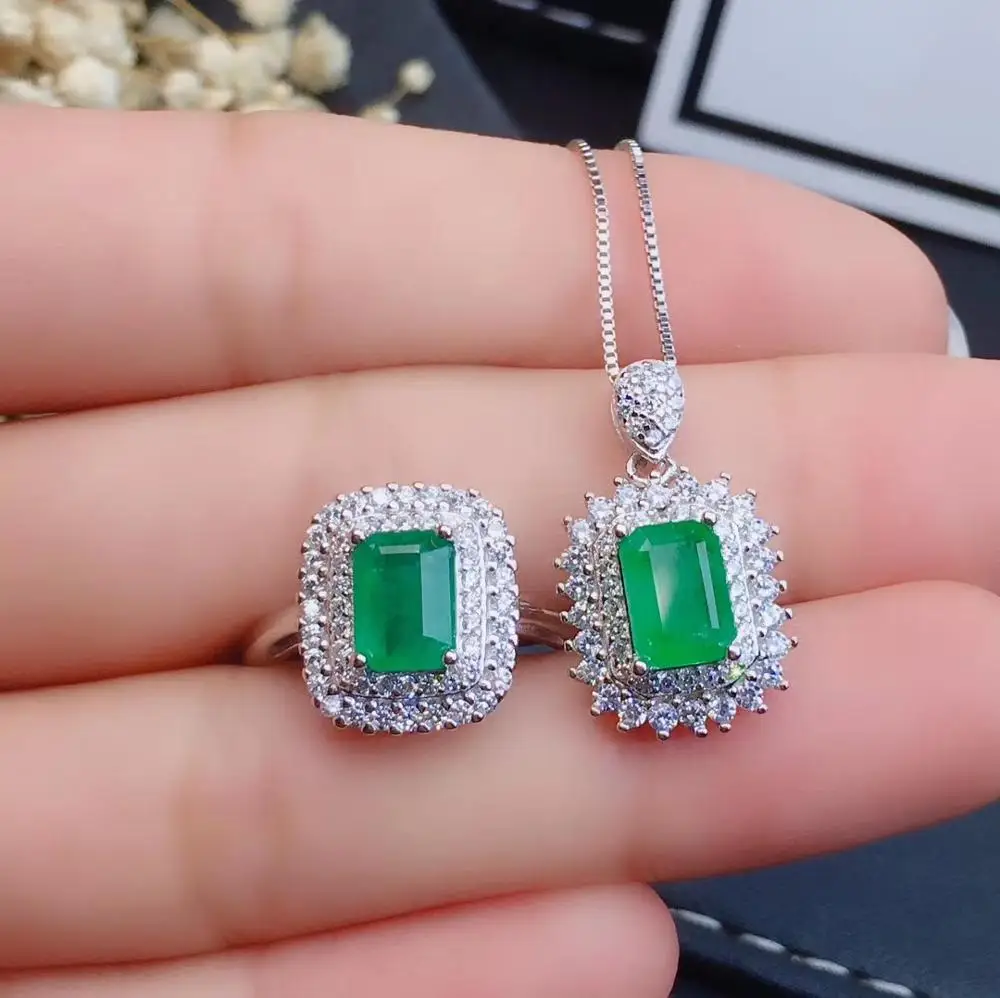 Product Name: KJJEAXCMY بوتيك المجوهرات 925 الاسترليني الفضة مطعمة الطبيعية الزمرد قلادة قلادة حلقة المرأة دعوى دعم كشف