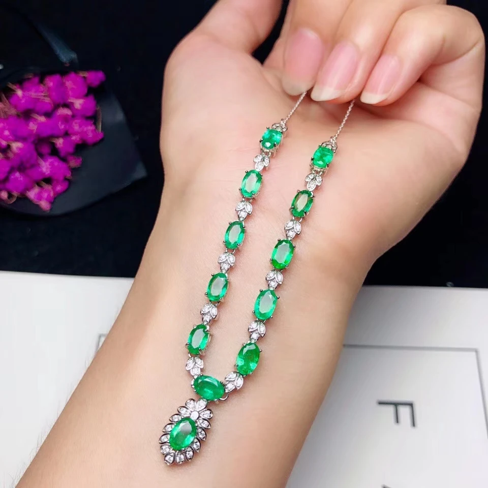 Product Name: KJJEAXCMY بوتيك المجوهرات 925 الاسترليني الفضة مطعمة الطبيعية أحجار كريمة من الزمرد الإناث قلادة قلادة دعم كشف جديد هاو