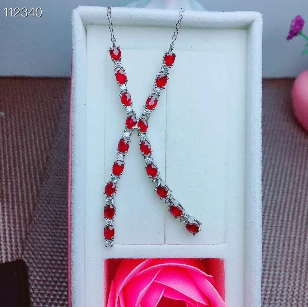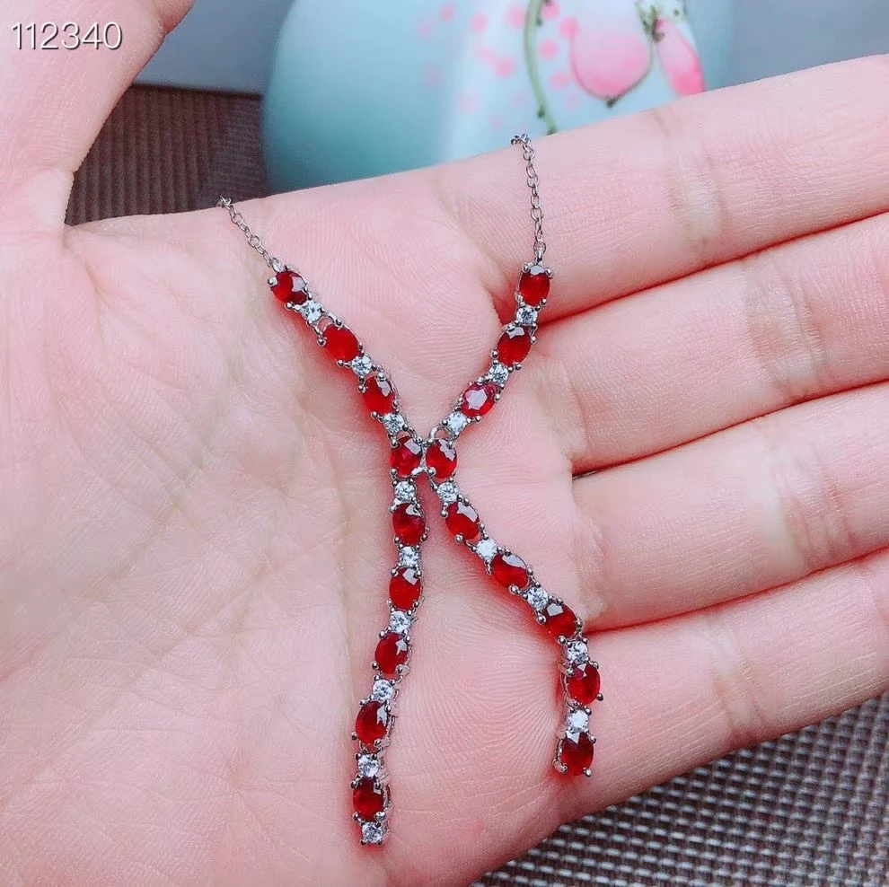 Product Name: KJJEAXCMY غرامة مجوهرات الطبيعية روبي 925 فضة المرأة الأحجار الكريمة قلادة قلادة سلسلة دعم اختبار رائعة