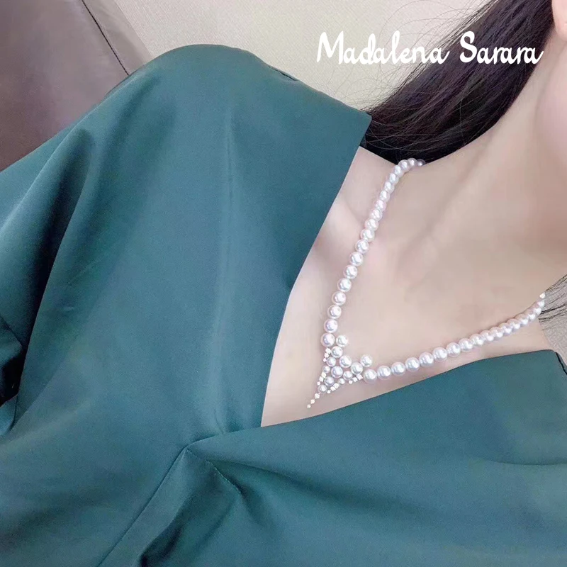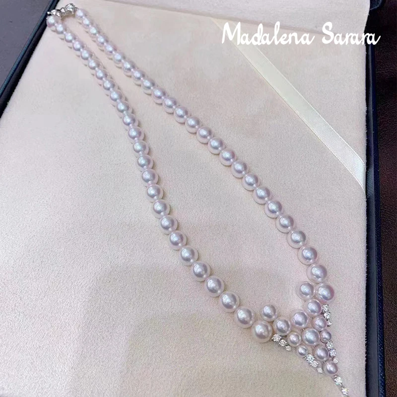 Product Name: MADALENA SARARA 7-8 مللي متر لؤلؤ المياه العذبة قلادة الأبيض الطبيعي تماما قلادة مستديرة الباندا النساء S925 اليدوية