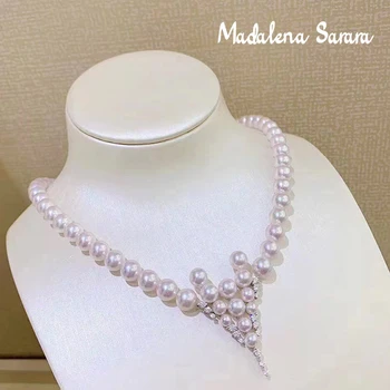 Special Offer MADALENA SARARA 7-8 مللي متر لؤلؤ المياه العذبة قلادة الأبيض الطبيعي تماما قلادة مستديرة الباندا النساء S925 اليدوية Discount 35% Today!