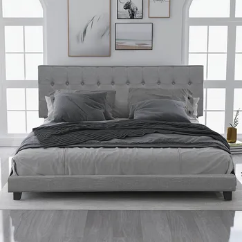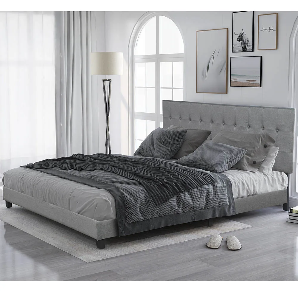Product Name: الحديث الكتان الموضوع معنقدة الملك الحجم سرير بلا أرجل الشمال زر تصميم الأثاث عالية الجودة الصلبة خشب الصنوبر الزفاف هيكل سرير