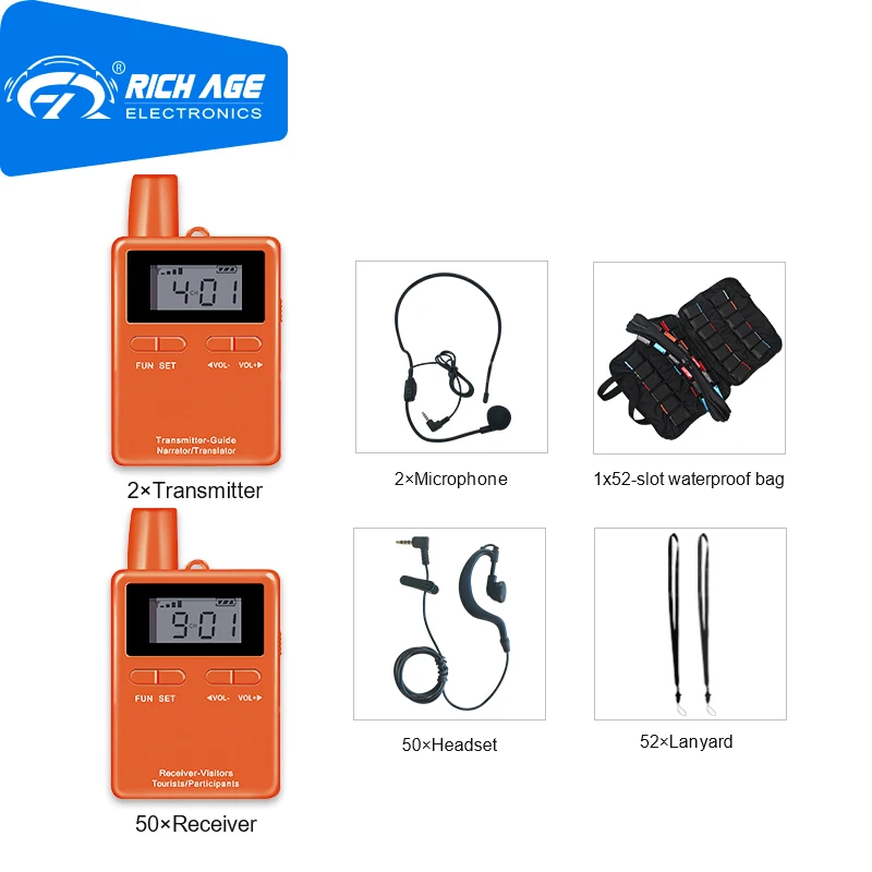 Product Name: RichiTek الرقمية UHF الصوت دليل سماعة الإرسال 2 + 50 إستقبال لل المجموعات السياحية مع مكثف ميكروفون