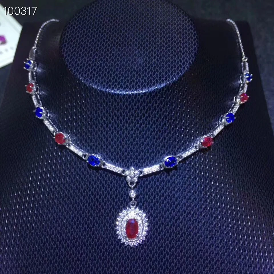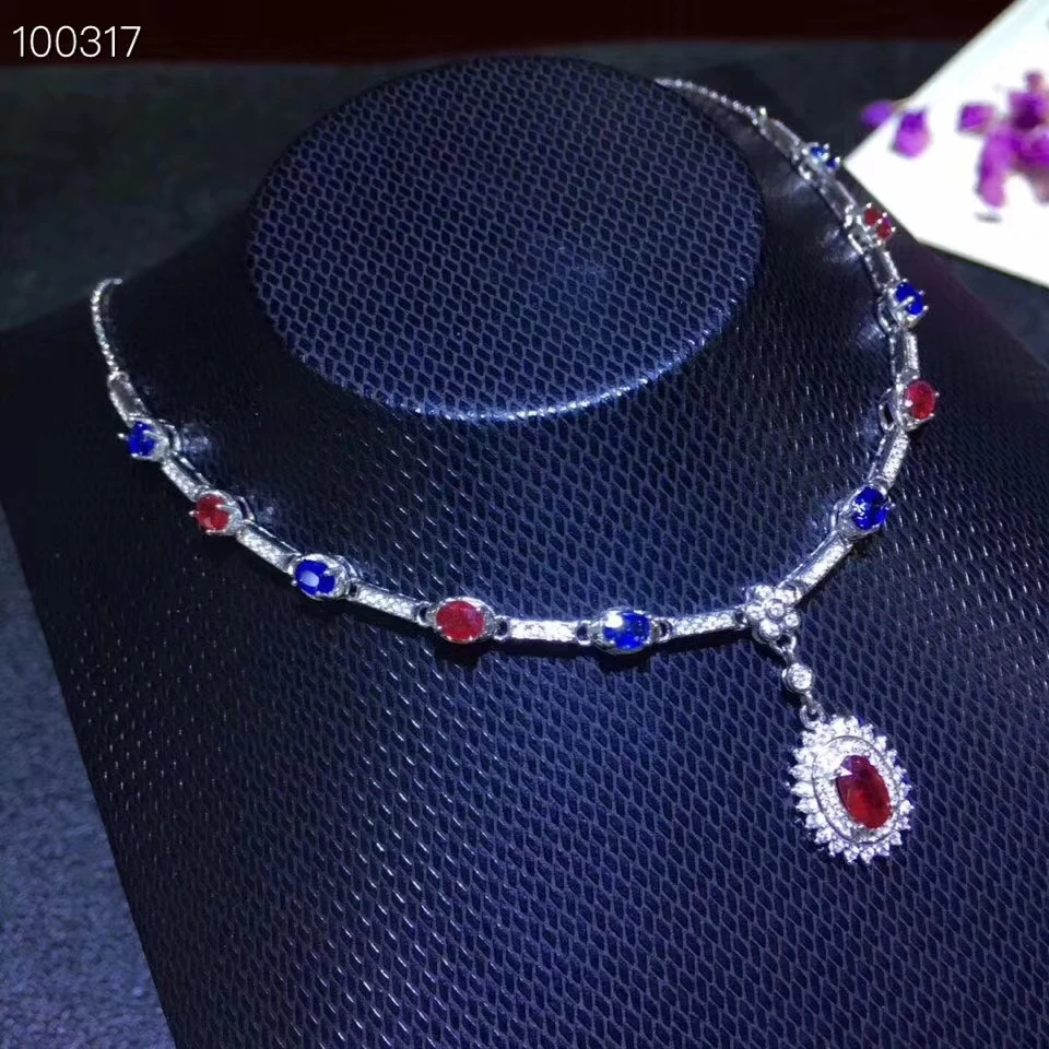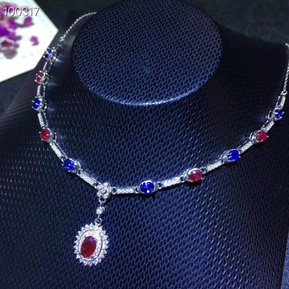 Product Name: قلادة ياقوت متعددة الألوان طبيعية قلادة الياقوت الأحمر الطبيعي قلادة S925 فضة سلسلة عصرية جميلة مجوهرات حفلة ديانا هدية