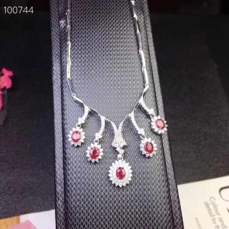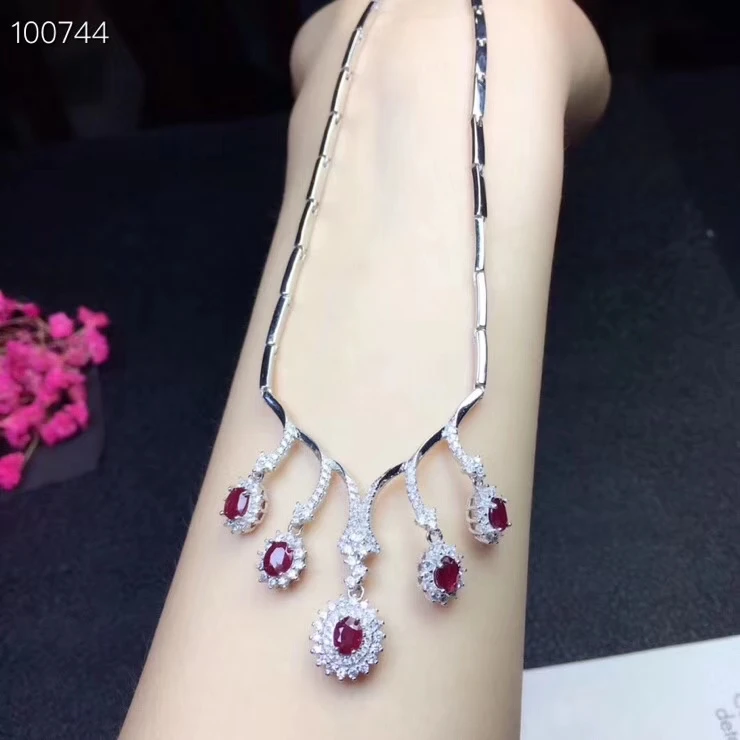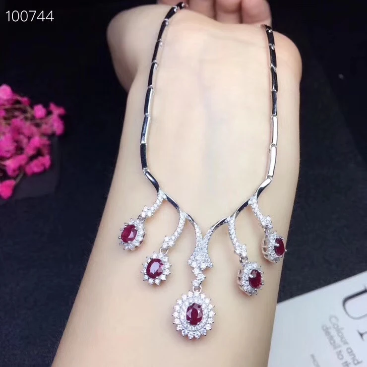 Special Offer قلادة من الأحجار الكريمة الطبيعية باللون الأحمر والياقوت قلادة من الأحجار الكريمة الطبيعية مصنوعة من الفضة S925 قلادة فاخرة من شراشيب الزهور ... Discount 18% Today!