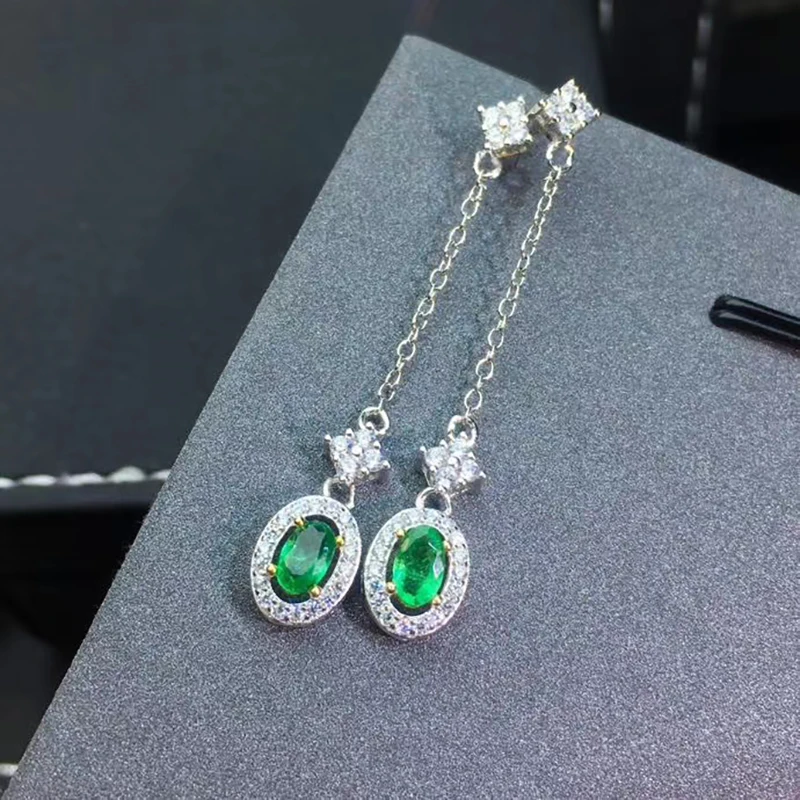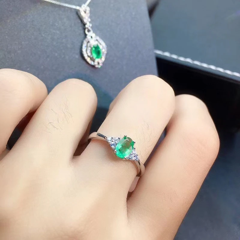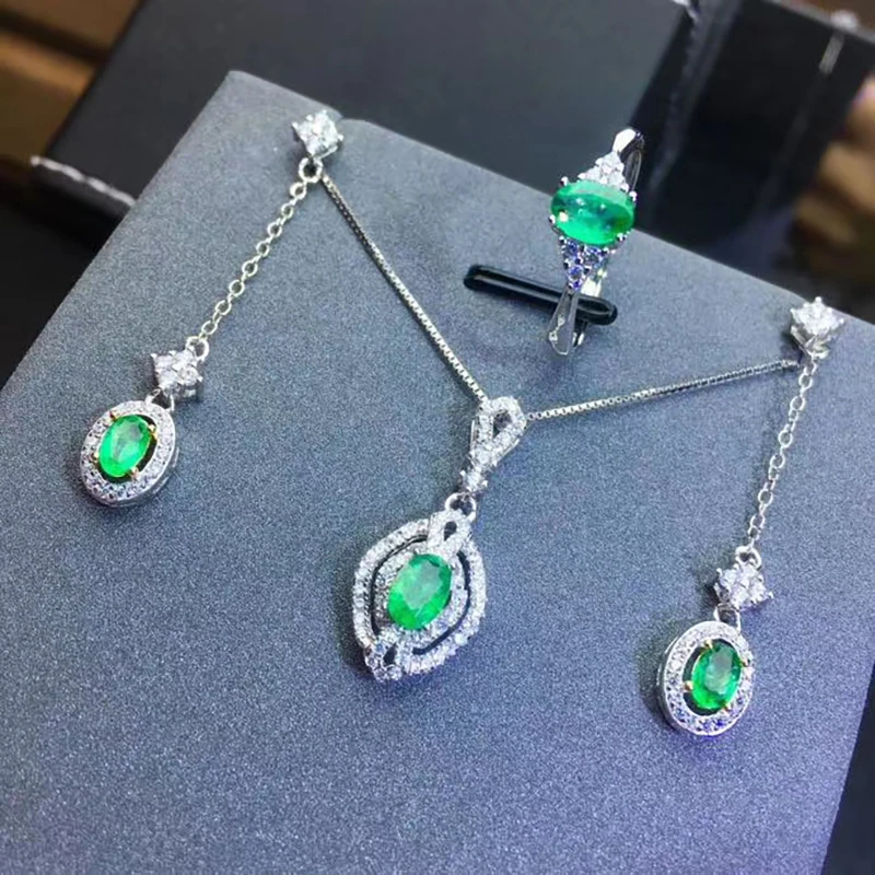Product Name: الطبيعية الزمرد مجموعات مجوهرات قلادة خاتم و إسقاط أقراط للنساء S925 الفضة غرامة مجوهرات ريال الزمرد الأحجار الكريمة Hot البيع