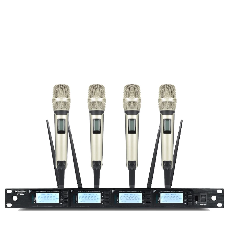 Special Offer سوم ST2004 4 قنوات UHF المهنية ميكروفون لاسلكي سماعة/مشبك ميكروفون لافالير أداء مسرحي الزفاف كاريوكي Discount 0% Today!