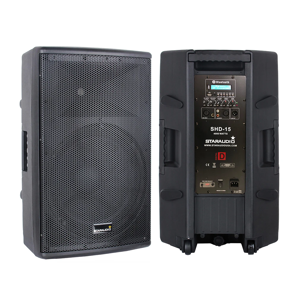 Special Offer STARAUDIO 2X 4000 واط 15 "مدعوم الصوت النشطة PA مكبرات صوت بخاصية البلوتوث DJ المرحلة KTV تقف 1CH UHF سماعات رأس لاسلكية ميكروفون SHD-15 Discount 0% Today!