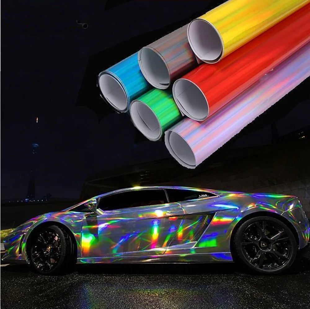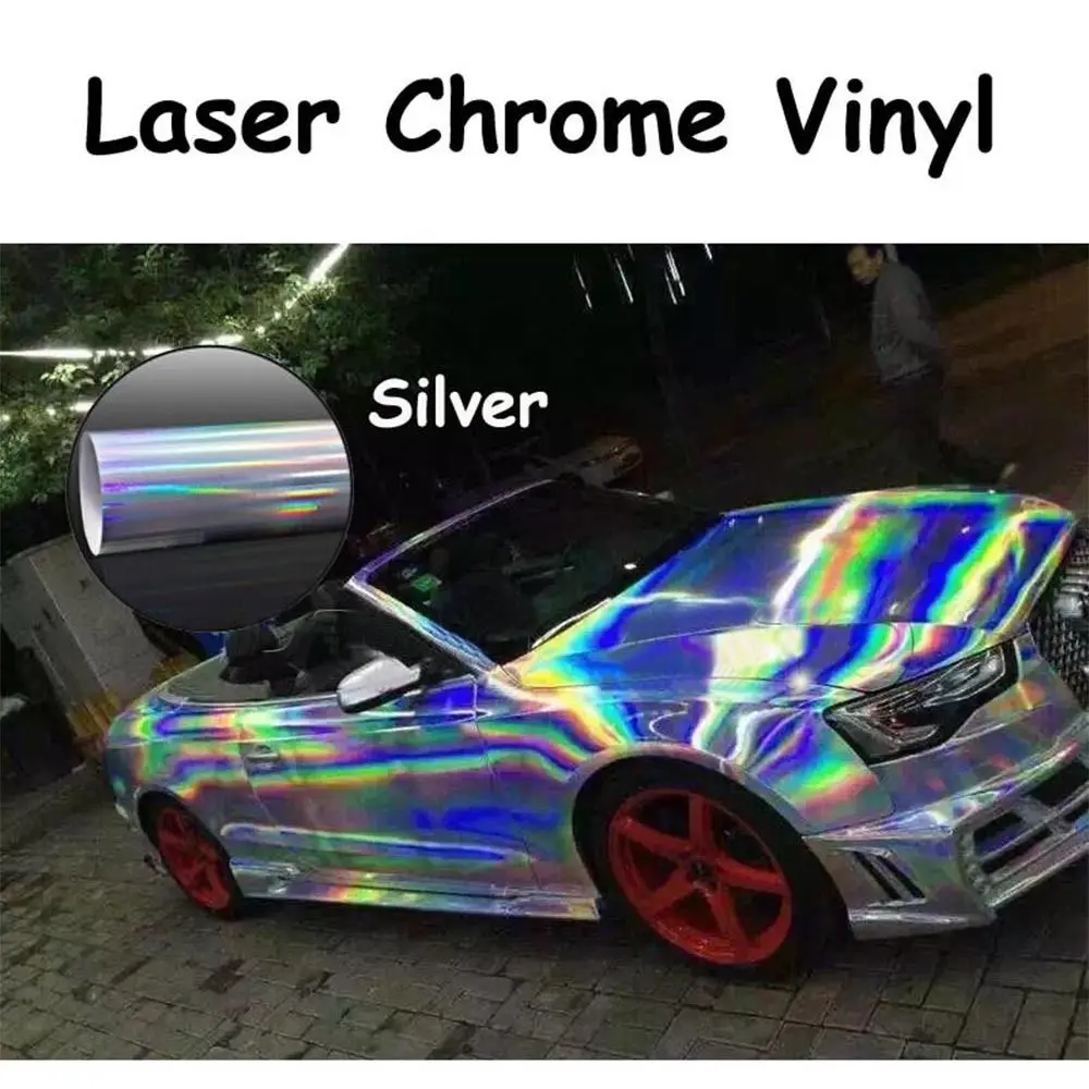 Product Name: SUNICE 1.49X18M لفة ليزر قوس قزح كروم الفينيل السيارات سيارة التفاف طبقة صفيحة فقاعة الهواء ملصق سيارة مجانية والشارات البلاستيكية ديكو