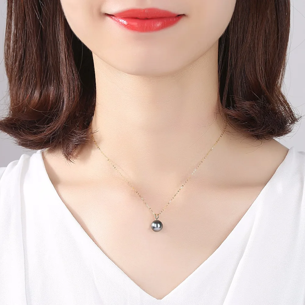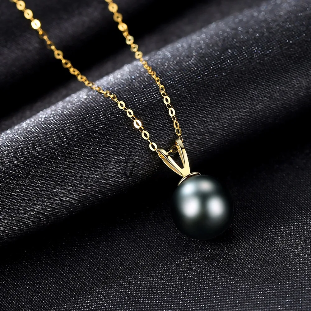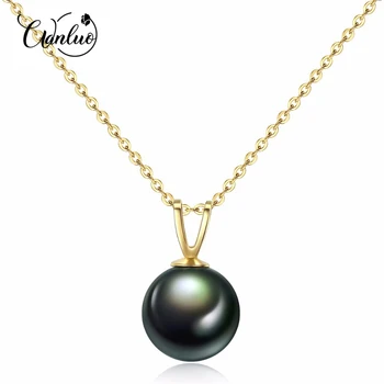 Product Name: WANLUO حقيقية 18K الذهب سلسلة قلادة الطبيعية تاهيتي الأسود اللؤلؤ معلقة القلائد للنساء غرامة مجوهرات هدية عيد الحب