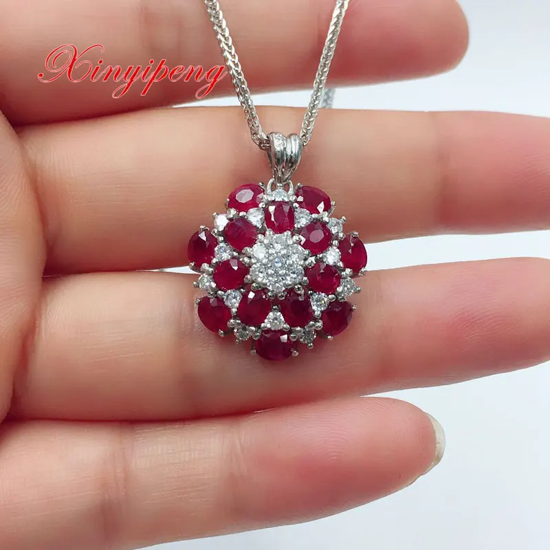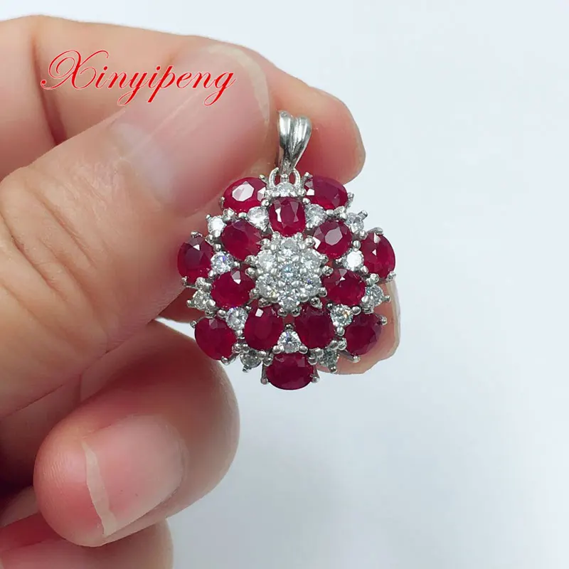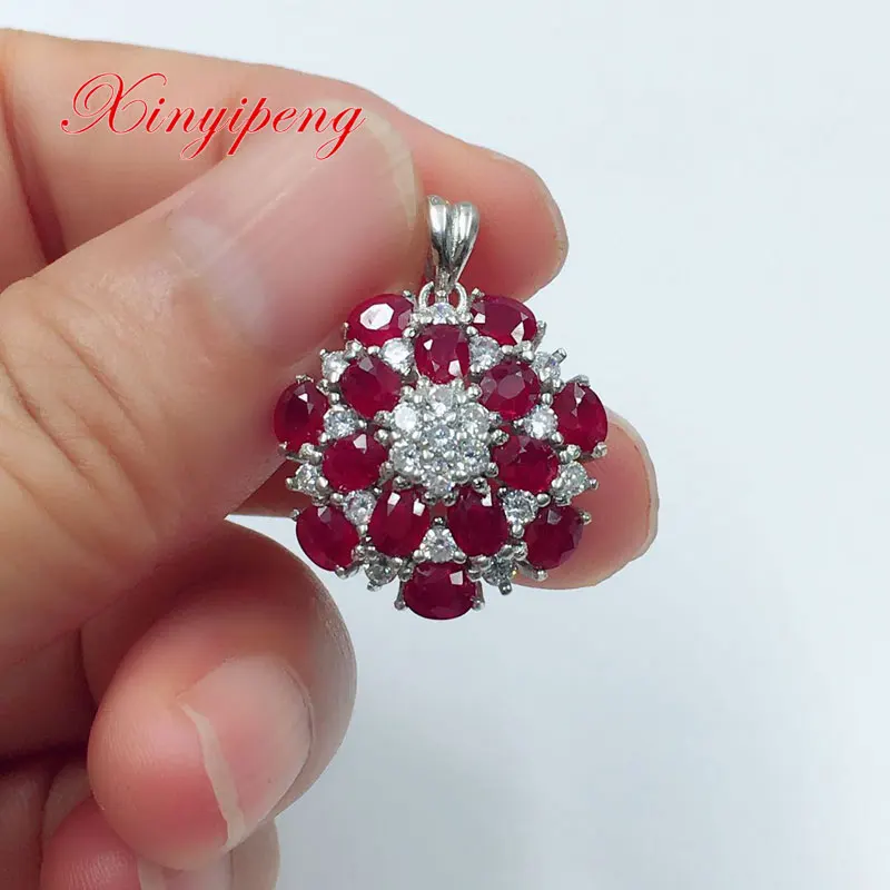 Product Name: شين Yipeng S925 فضة مطلية بالذهب مطعمة ريال الطبيعية دلاية محلاه بالياقوت غرامة الزفاف المشاركة هدية للنساء 3*4 مللي متر
