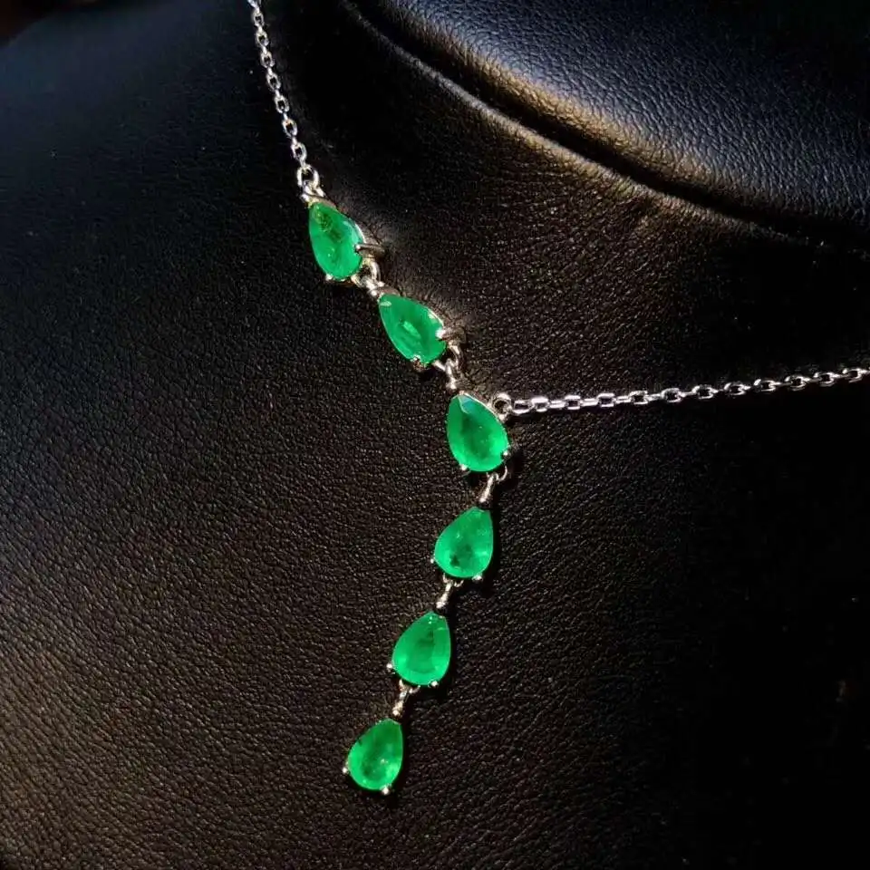 Product Name: 100% الطبيعية والحقيقية الزمرد قلادة الصلبة S925 فضة الزمرد قلادة للنساء اللون جوهرة حجر غرامة مجوهرات