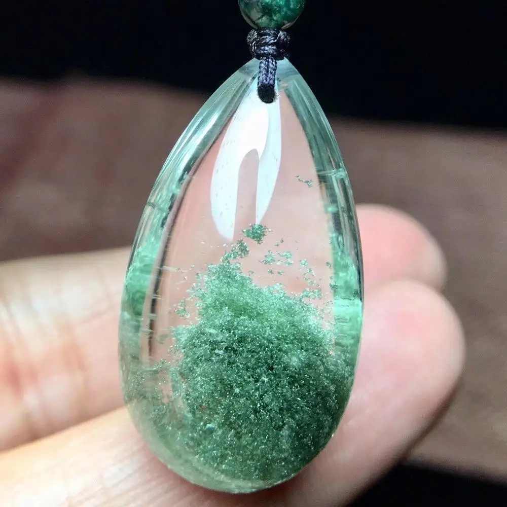 Product Name: حقيقية الطبيعية الأخضر فانتوم قلادة من الكوارتز 17.5*6 مللي متر قطرة الماء المرأة رجل قلادة مجوهرات شهادة AAAAA