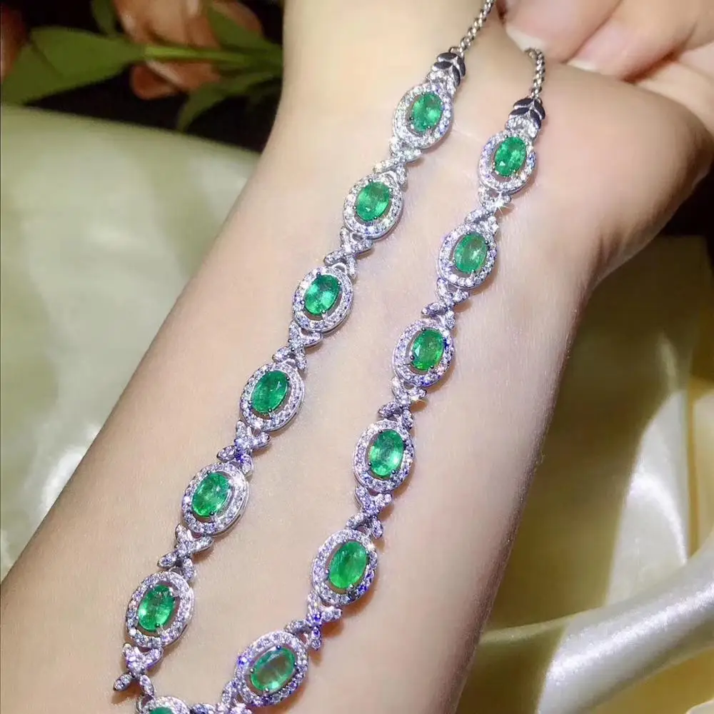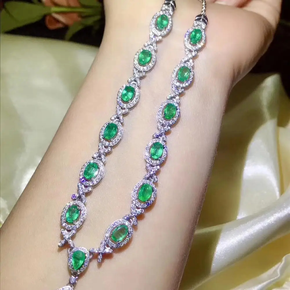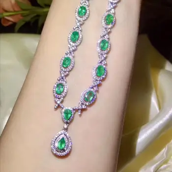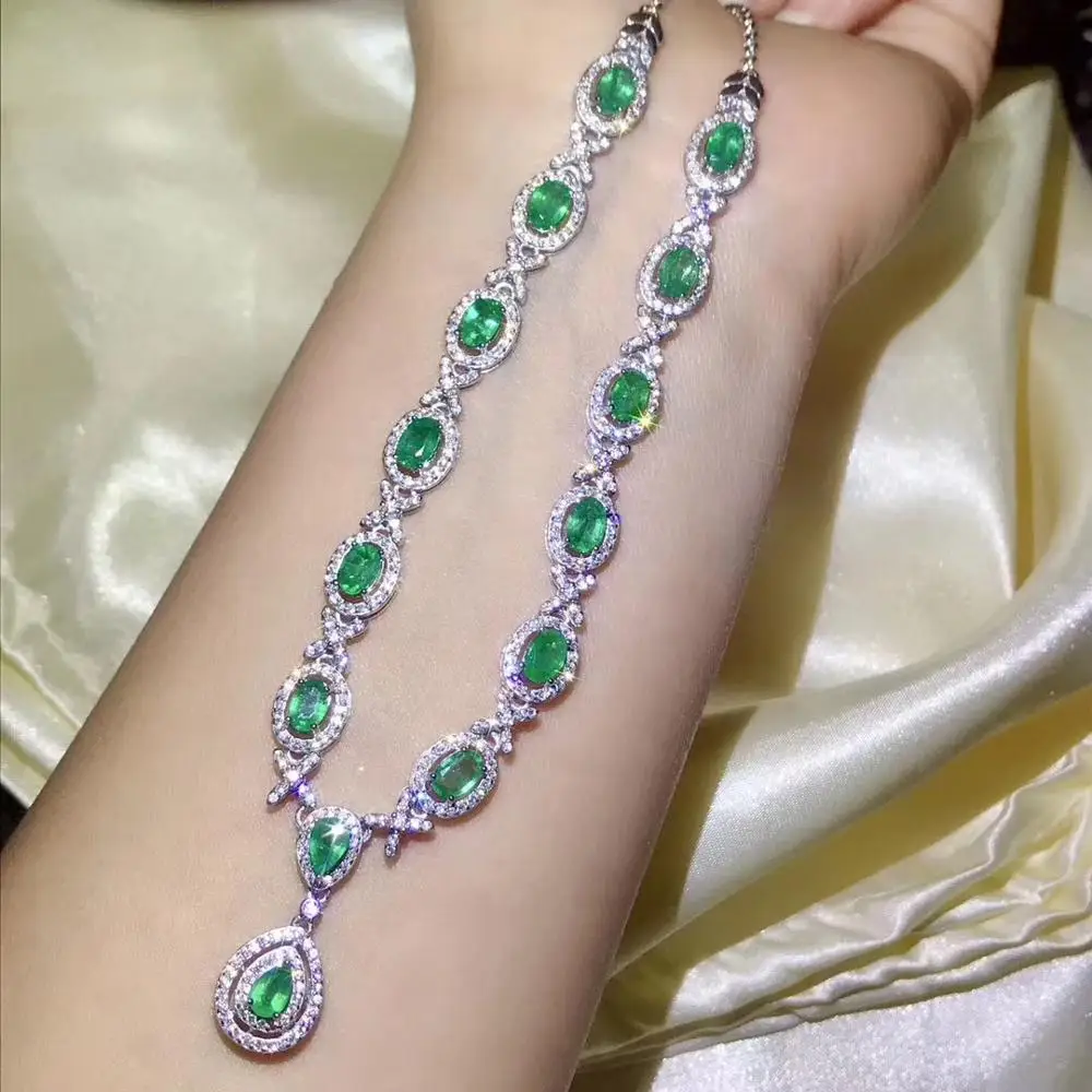 Special Offer رائعة الأخضر أحجار كريمة من الزمرد قلادة للنساء الفضة والمجوهرات فتاة حفلة هدية للذكرى السنوية الطبيعية البيضاوي جوهرة جيد قطع أنيقة Discount 30% Today!