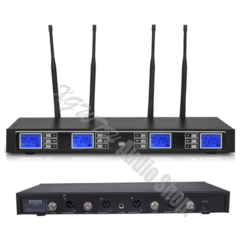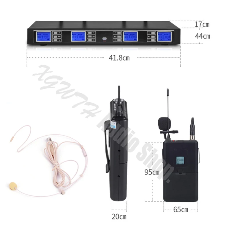 Product Name: المهنية 4 قناة مكبر صوت لا سلكي ذو تردد فوق العالي نظام 4 سماعة هيئة التصنيع العسكري Bodypack 1 اللاسلكية شاشة الكريستال السائل استقبال ل كاريوكي DJ...