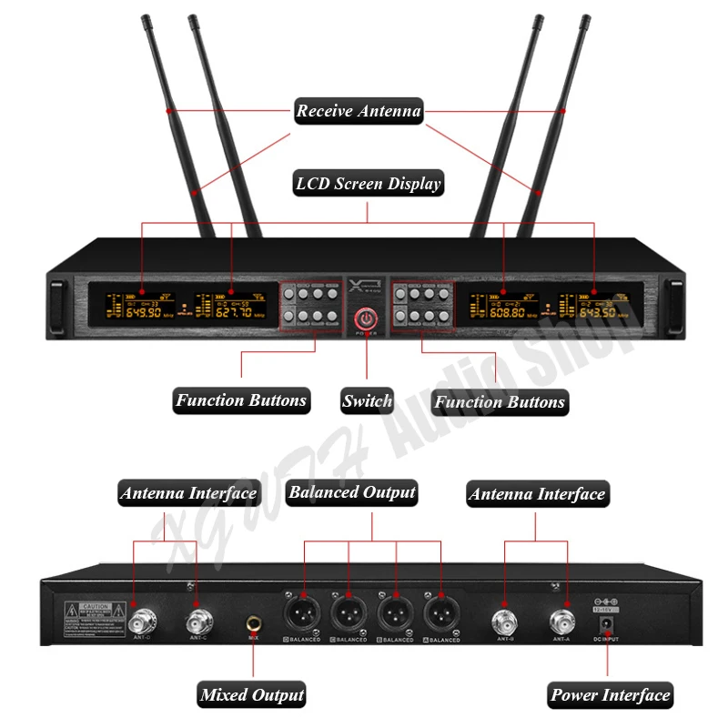 Product Name: نظام مكبر صوت لا سلكي ذو تردد فوق العالي 4 قناة رئيس ارتداء سماعة Headworn اللاسلكي المكثف ميكروفون سماعة مع استقبال