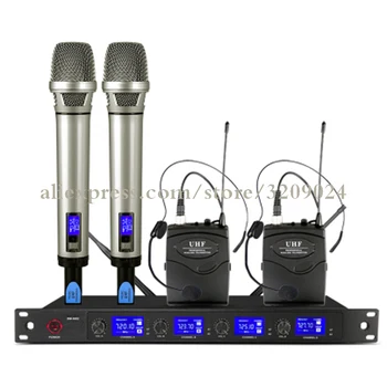 Special Offer برو 4 قنوات مكبر صوت لا سلكي ذو تردد فوق العالي Mic نظام 2 يده 2 سماعة Mic المنزل حزب DJ كاريوكي KTV ميكروفون نظام Discount 5% Today!