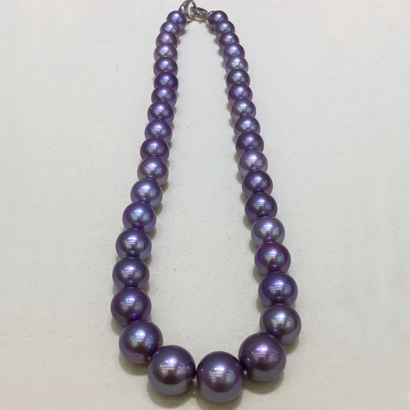 Product Name: الكلاسيكية 45 سنتيمتر 11-14 مللي متر كبير الطبيعي الأرجواني اللؤلؤ المستديرة المختنق قلادة سلسلة للنساء أمي عاشق عالية بريق غرامة مجوهرات