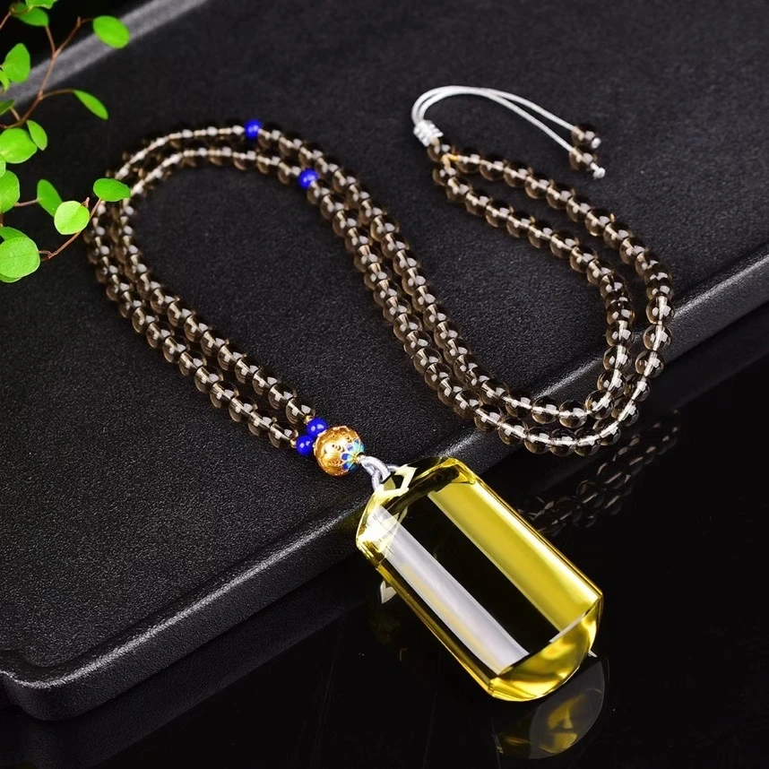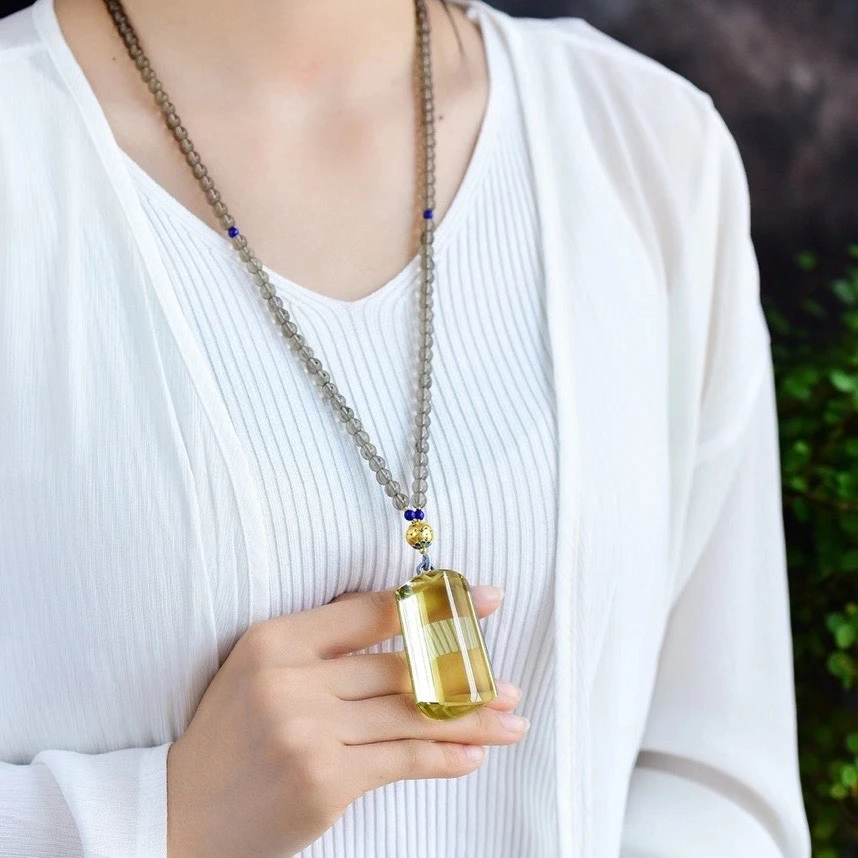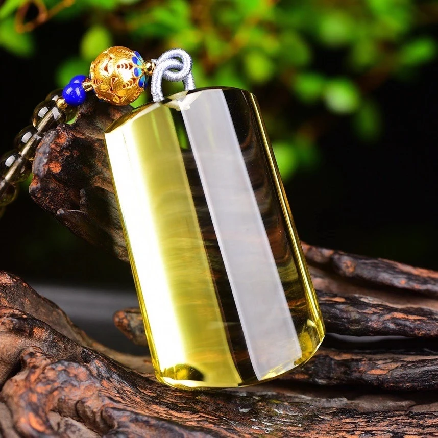 Special Offer الطبيعية الأصفر سيترين كوارتز كريستال مستطيل قلادة النساء الرجال واضح 54*28*19 مللي متر الغنية عقد من اللؤلؤ AAAAA Discount 30% Today!