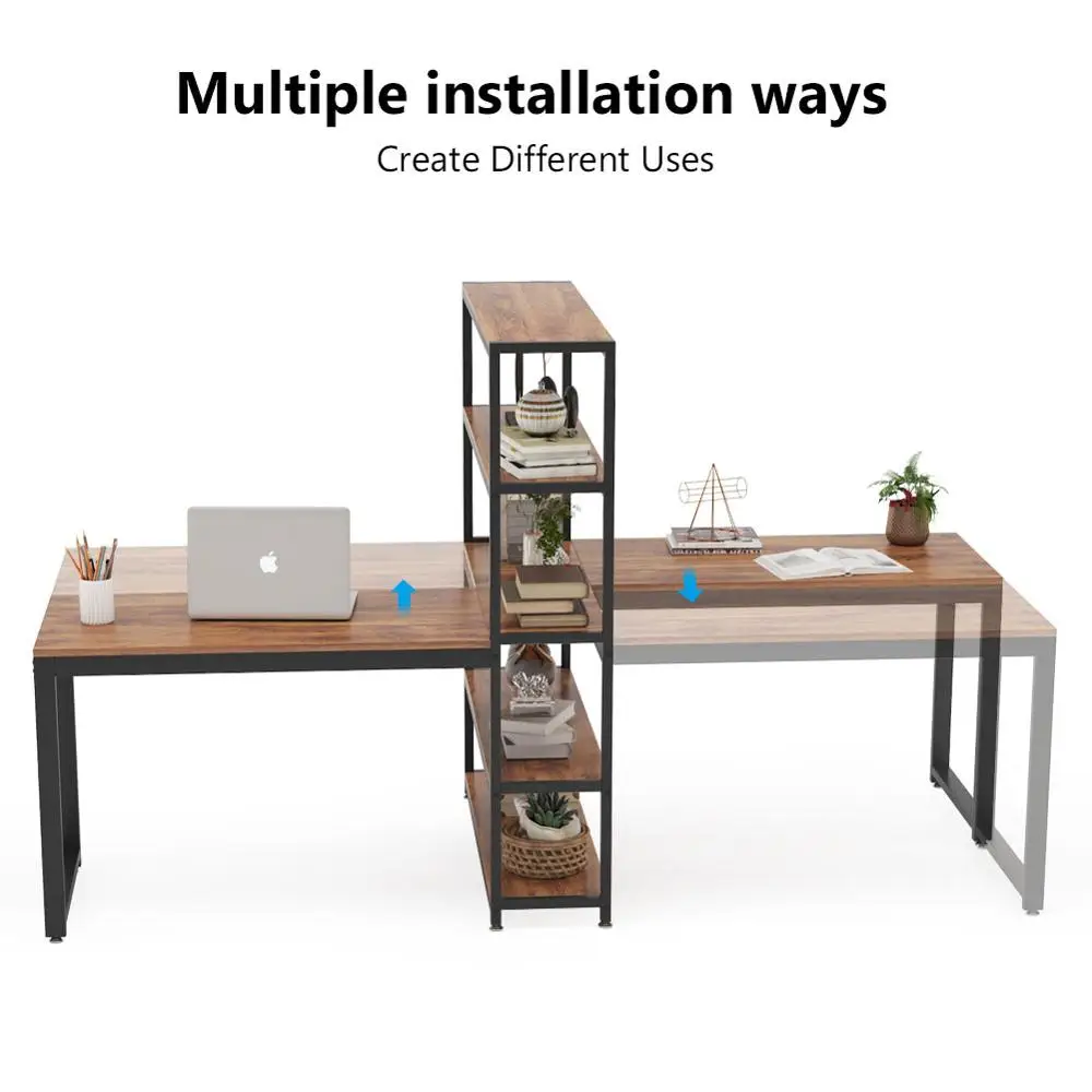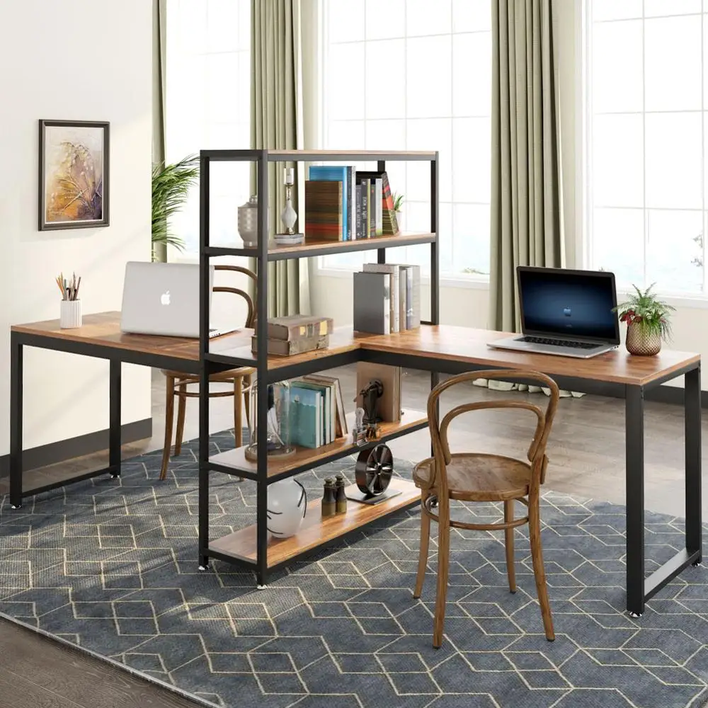 Product Name: رجال القبائل شخصين مكتب الكمبيوتر مع رف الكتب