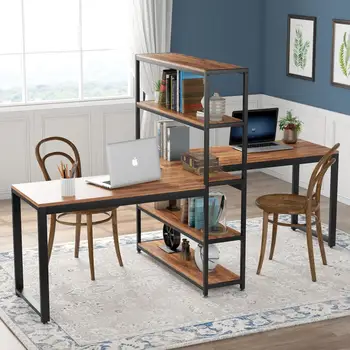 Special Offer رجال القبائل شخصين مكتب الكمبيوتر مع رف الكتب Discount 5% Today!