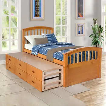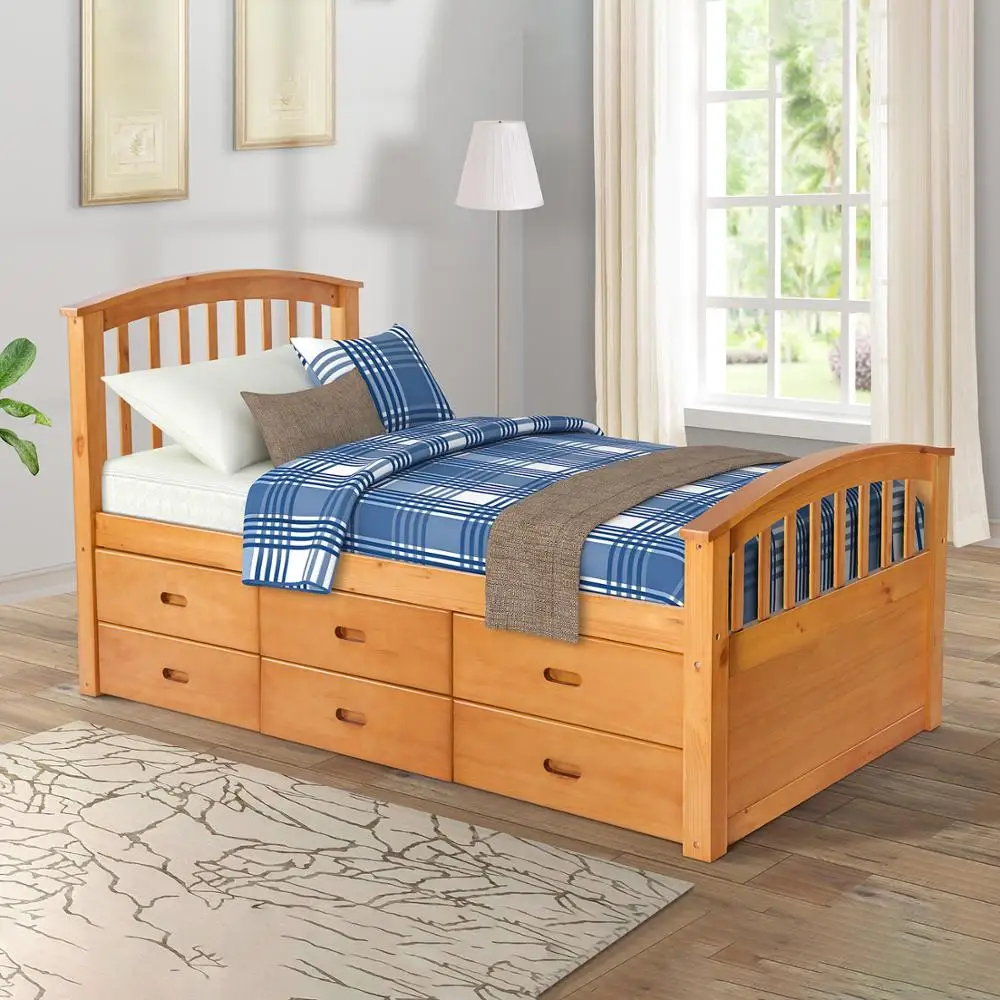 Special Offer التوأم حجم منصة النوم سرير مفرد الإطار خشب متين البلوط مع 6 أدراج التخزين و 10 شرائح الدعم قوية للكبار الاطفال Discount 30% Today!