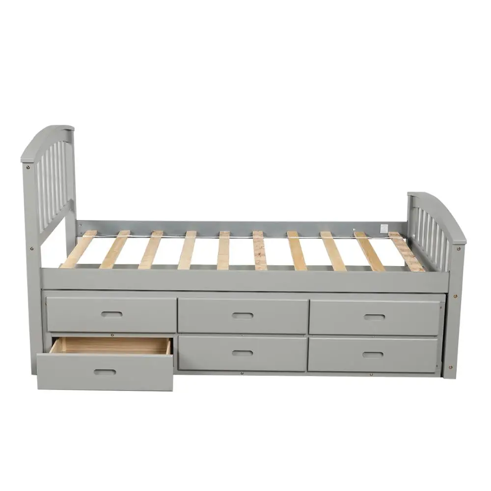 Special Offer إطار سرير حديث مع تخزين خشب متين سرير بلا أرجل مع 6 أدراج أثاث غرفة نوم حجم مزدوج Discount 40% Today!