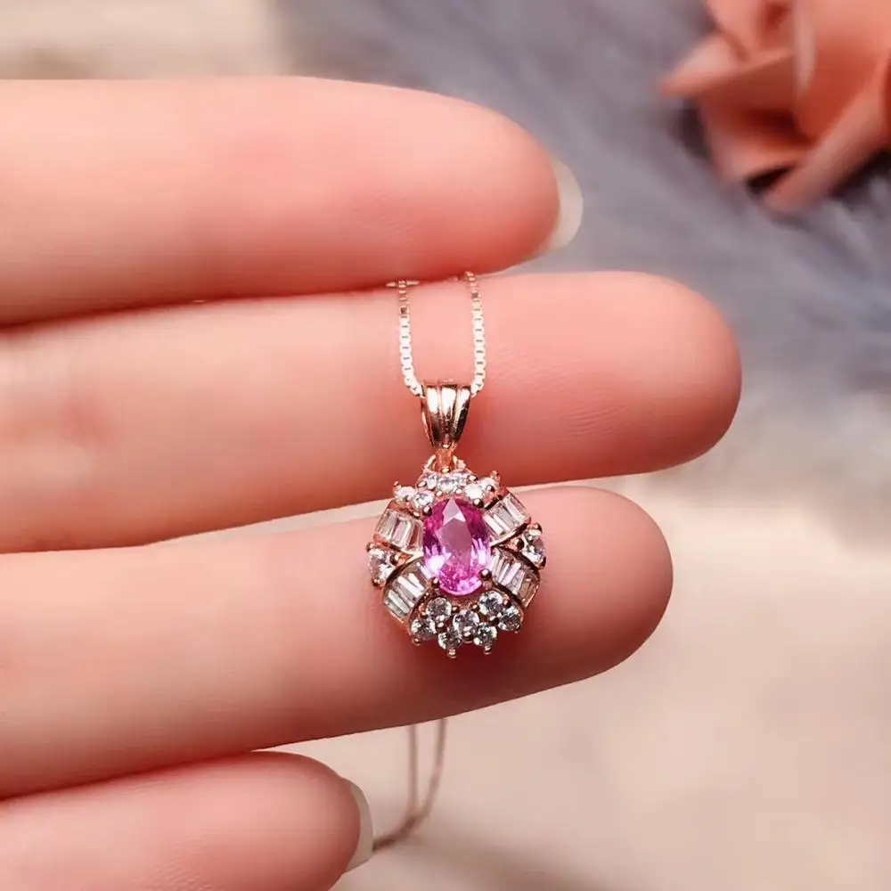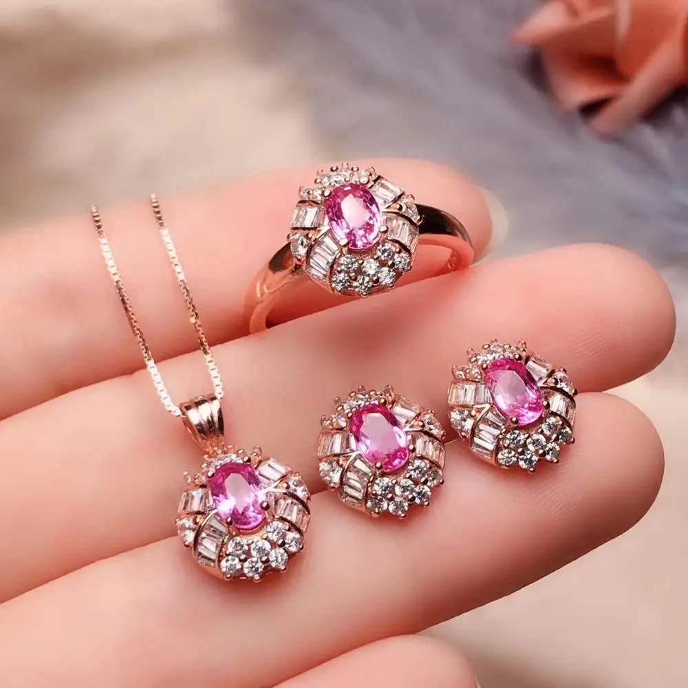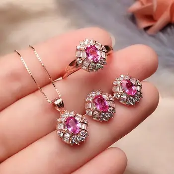 Product Name: أفضل هدية الخطوبة طقم مجوهرات الياقوت الطبيعي الحقيقي الياقوت 925 فضة 1 قطعة قلادة ، 1 قطعة خاتم ، 2 قطعة القرط