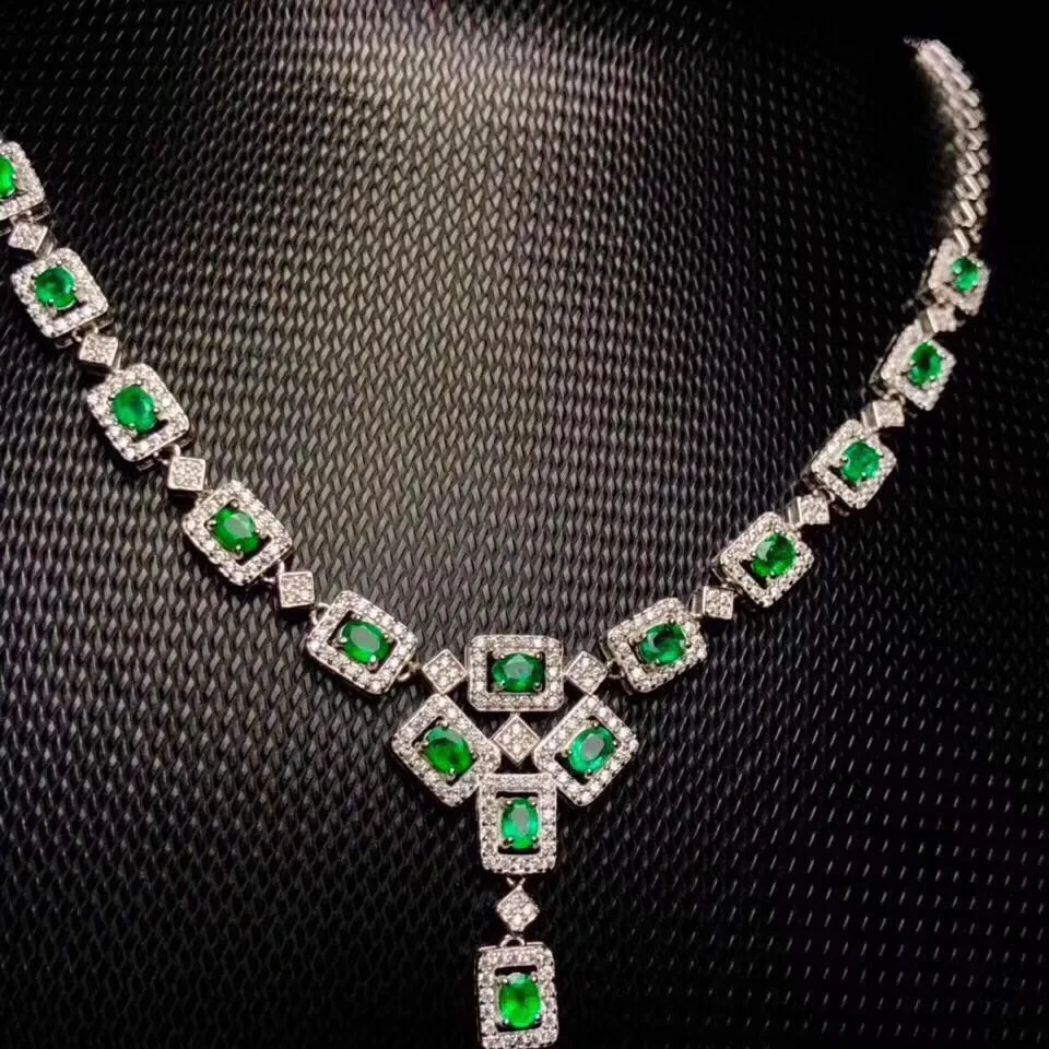 Product Name: قلادة الزمرد الطبيعية الكلاسيكية ، النمط الملكي ، جوهرة العالم الشهيرة ، نوعية جيدة ، السعر المنخفض ، 925 الفضة.
