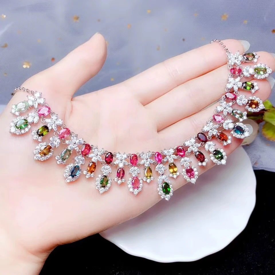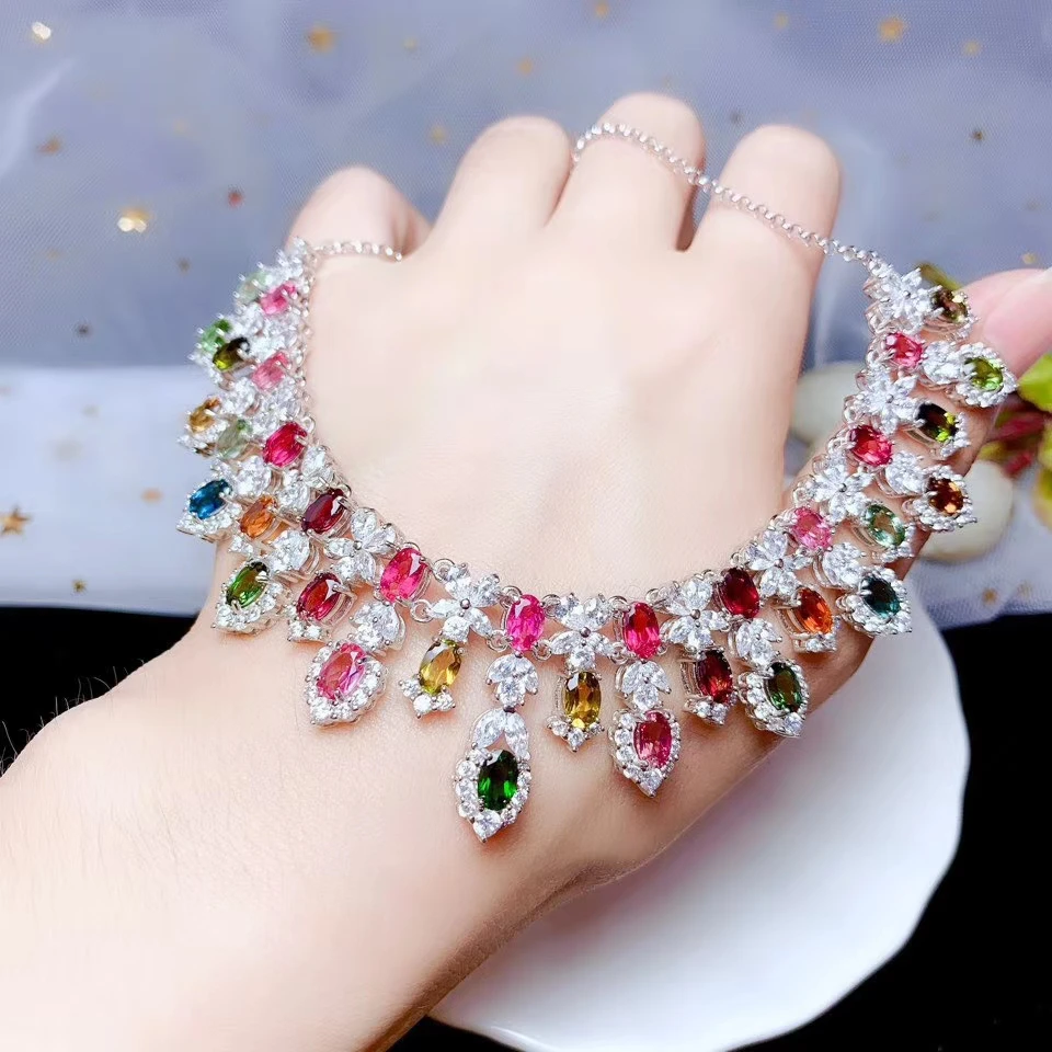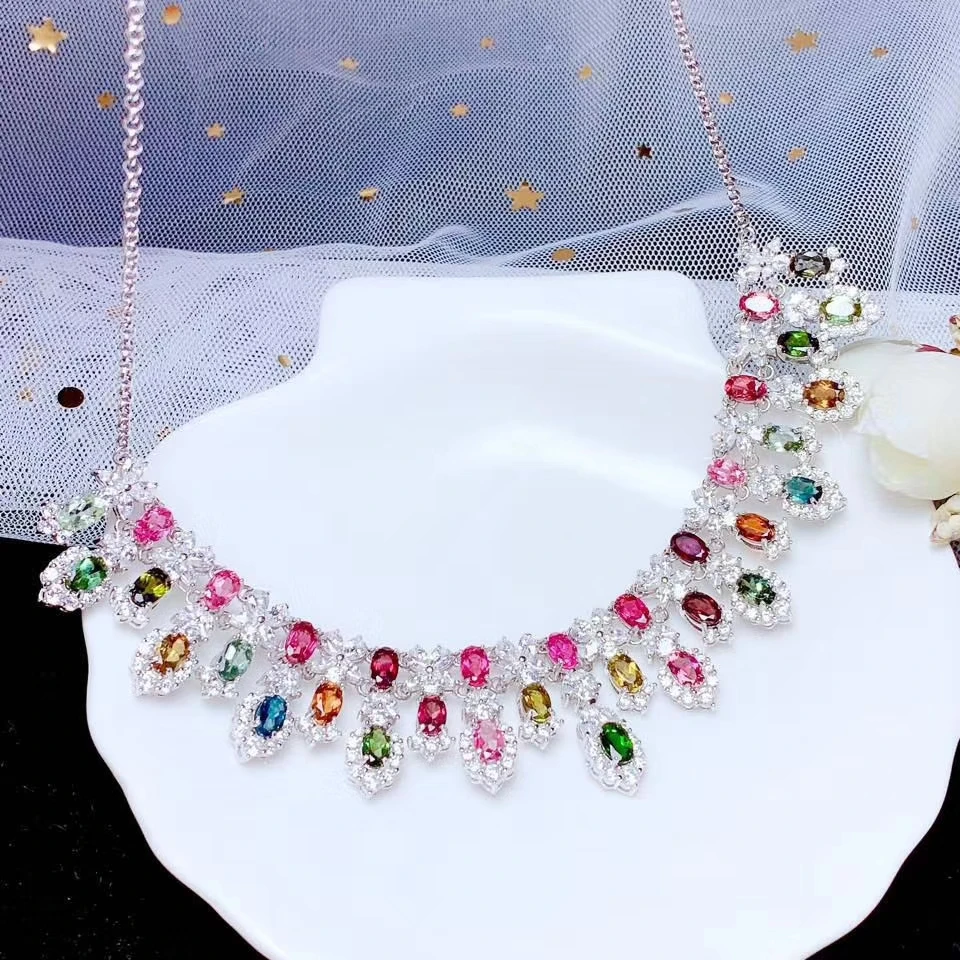 Special Offer KJJEAXCMY غرامة مجوهرات 925 الفضة النقية مطعمة تورمالين طبيعي فتاة جديدة قلادة قلادة خمر اختبار دعم الموضة Discount 19% Today!